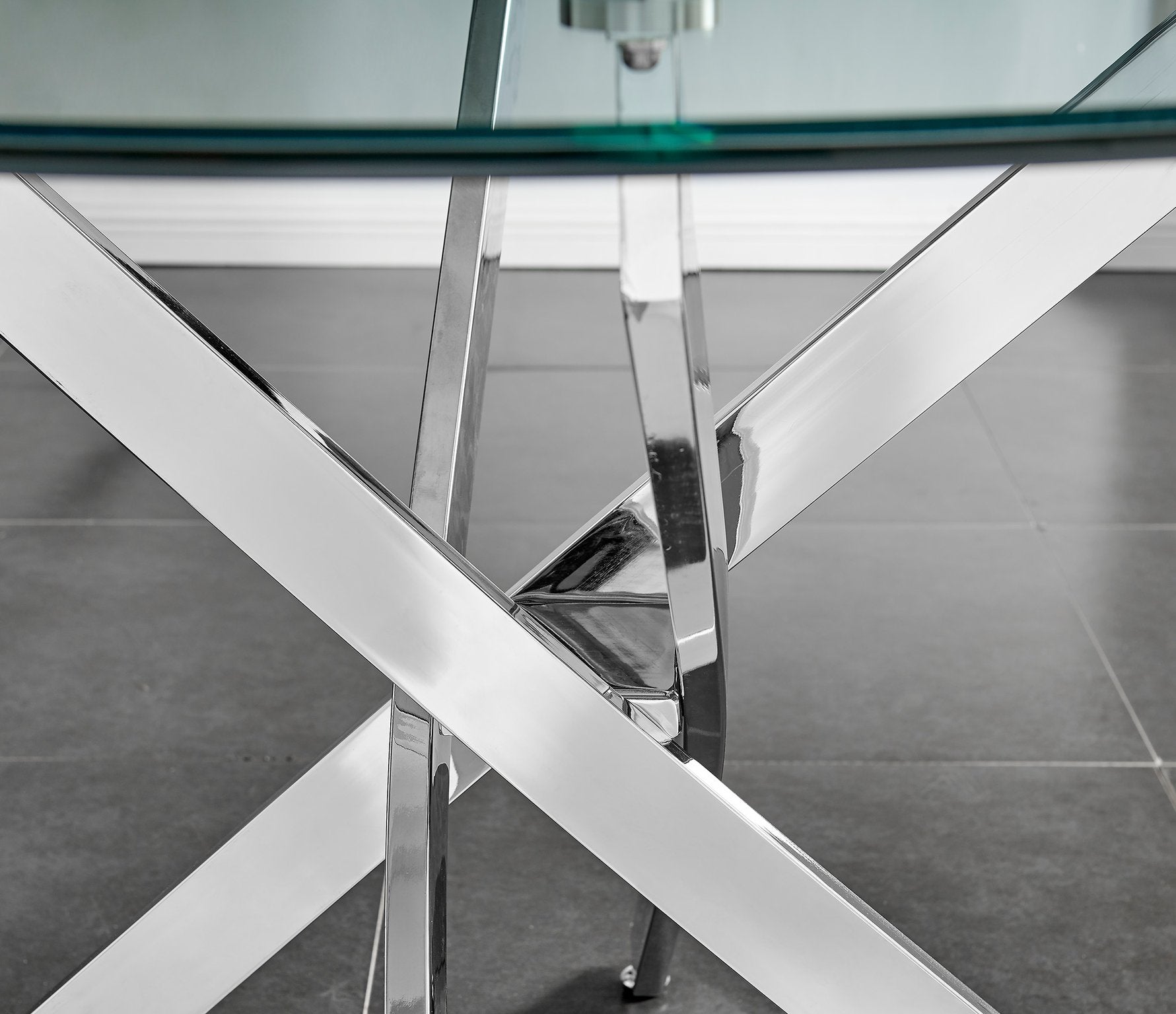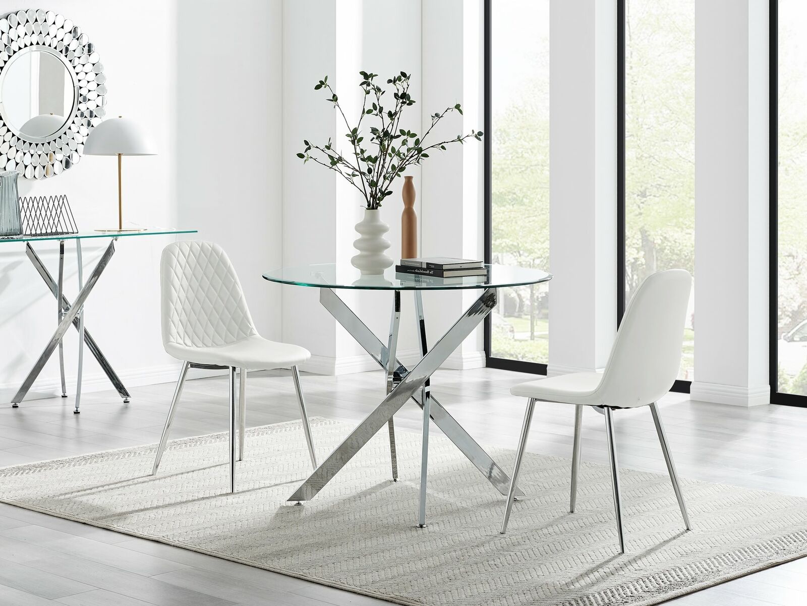 NOVARA 100cm Round Chrome Dining Table & 2 Faux Leather Corona Chrome Chairs