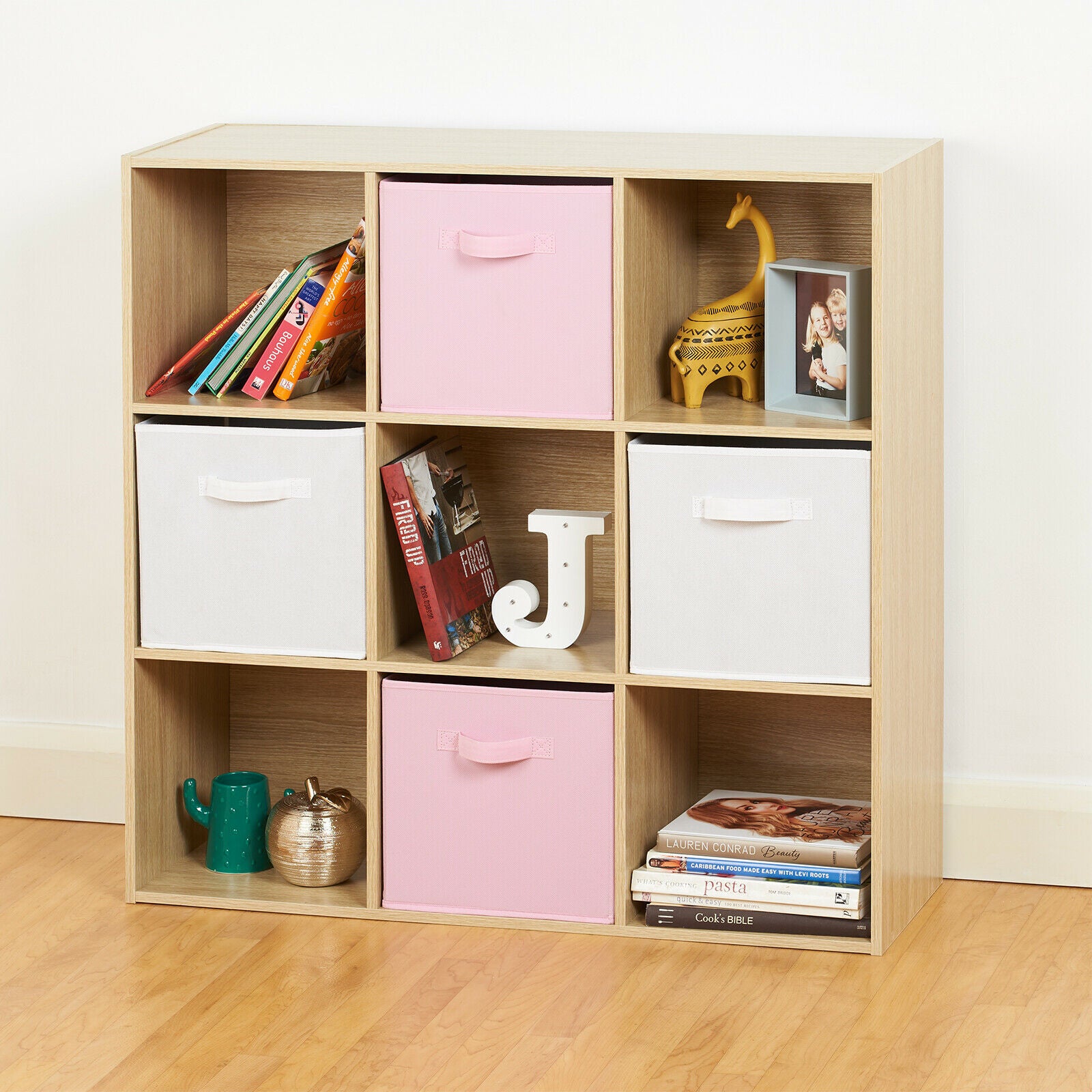 Oak 9 Cube Storage Unit White & Pink Boxes Childrens/Kids Bedroom Toy Basket/Box