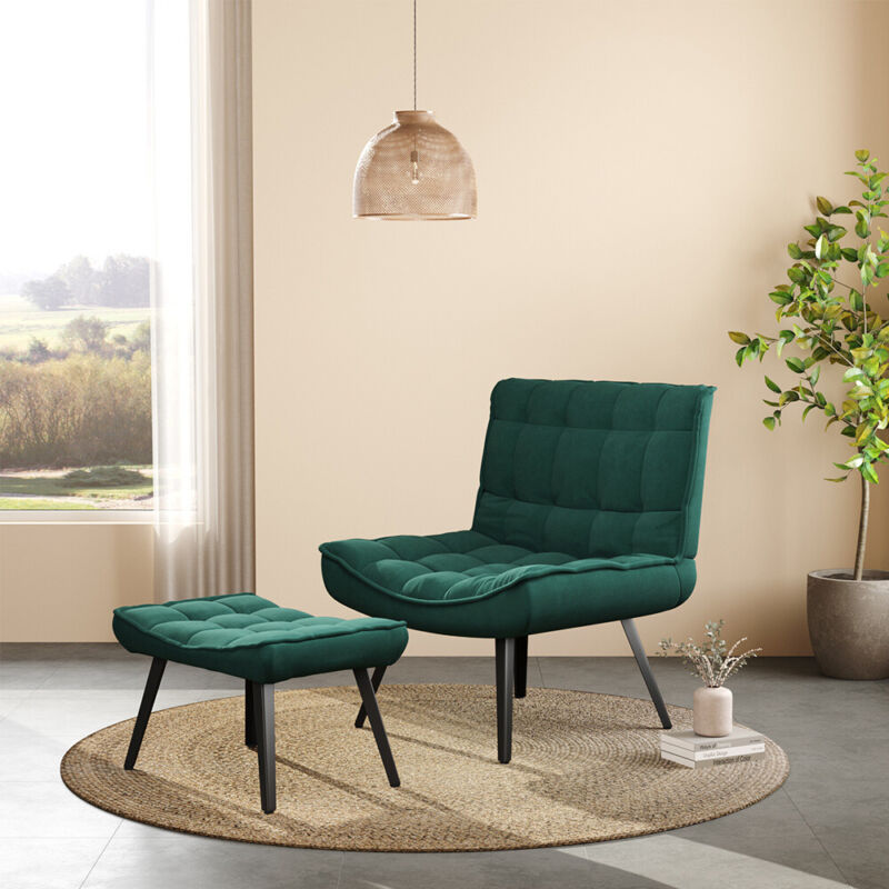 Occasional Armchair with Footstool Tufted Back Upholstered Fireside Sofa Chair