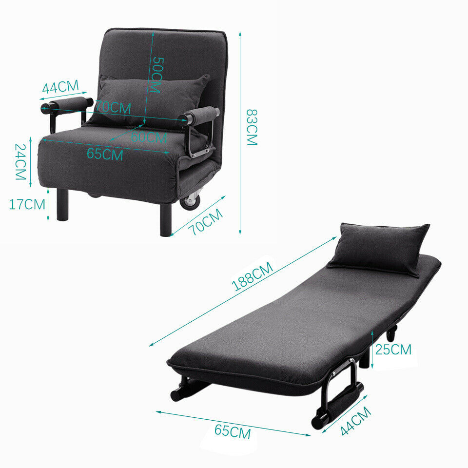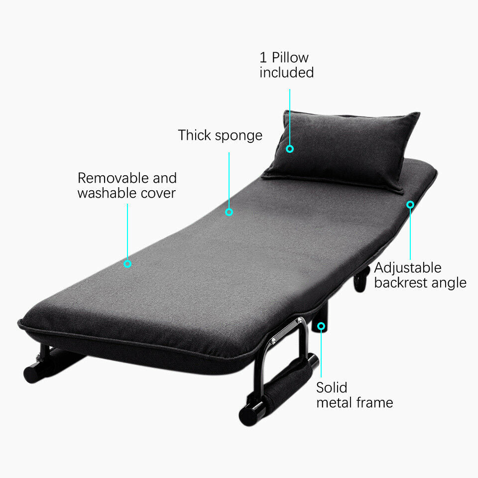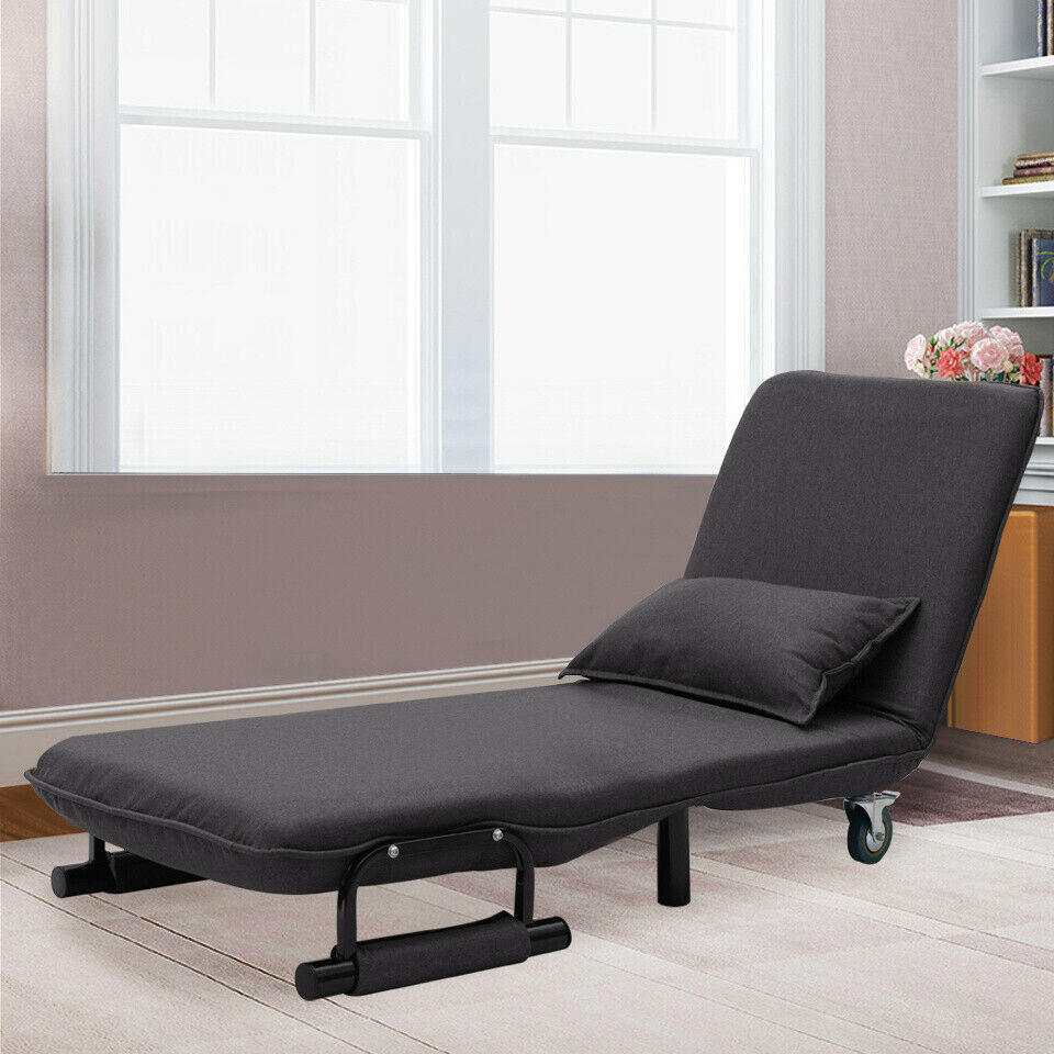 Occasional Sofa Bed Folding Futon Chair with Pillow Wheels Single Sleeper Guest