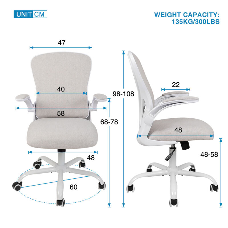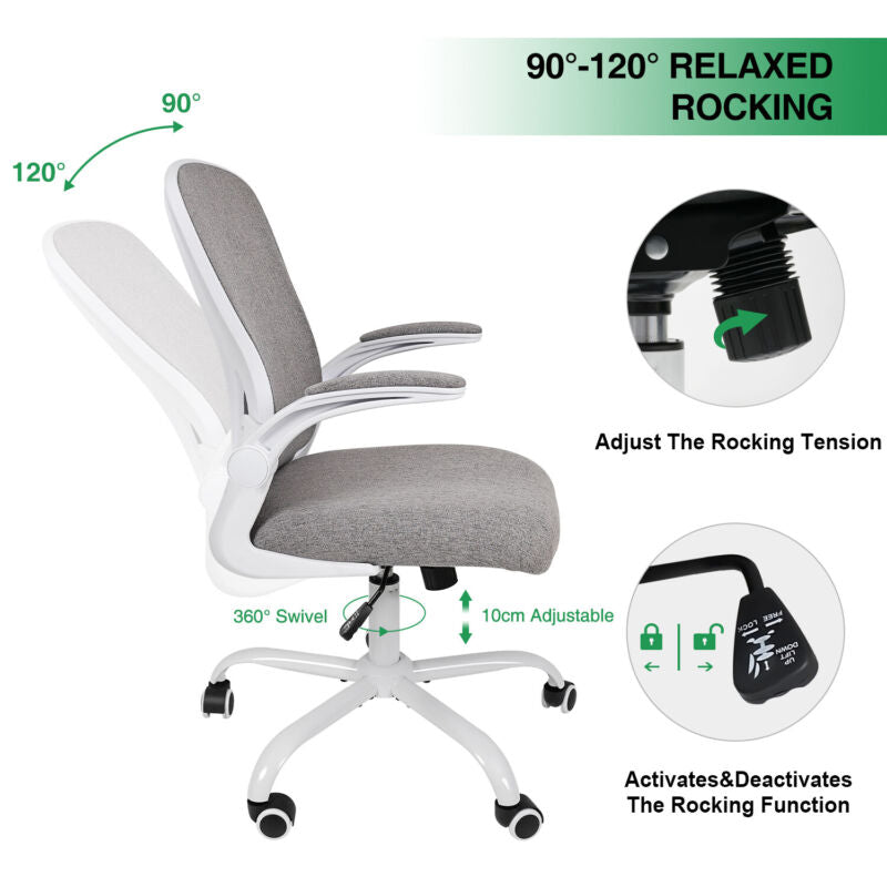 Office Chair Adjustable Swivel Computer Desk Rocker Padded Flip-up Armrests