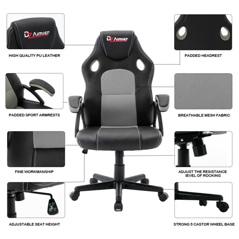 Office Chair Swivel Mesh Seat Executive Adjustable Racing Lift Gaming PU Leather