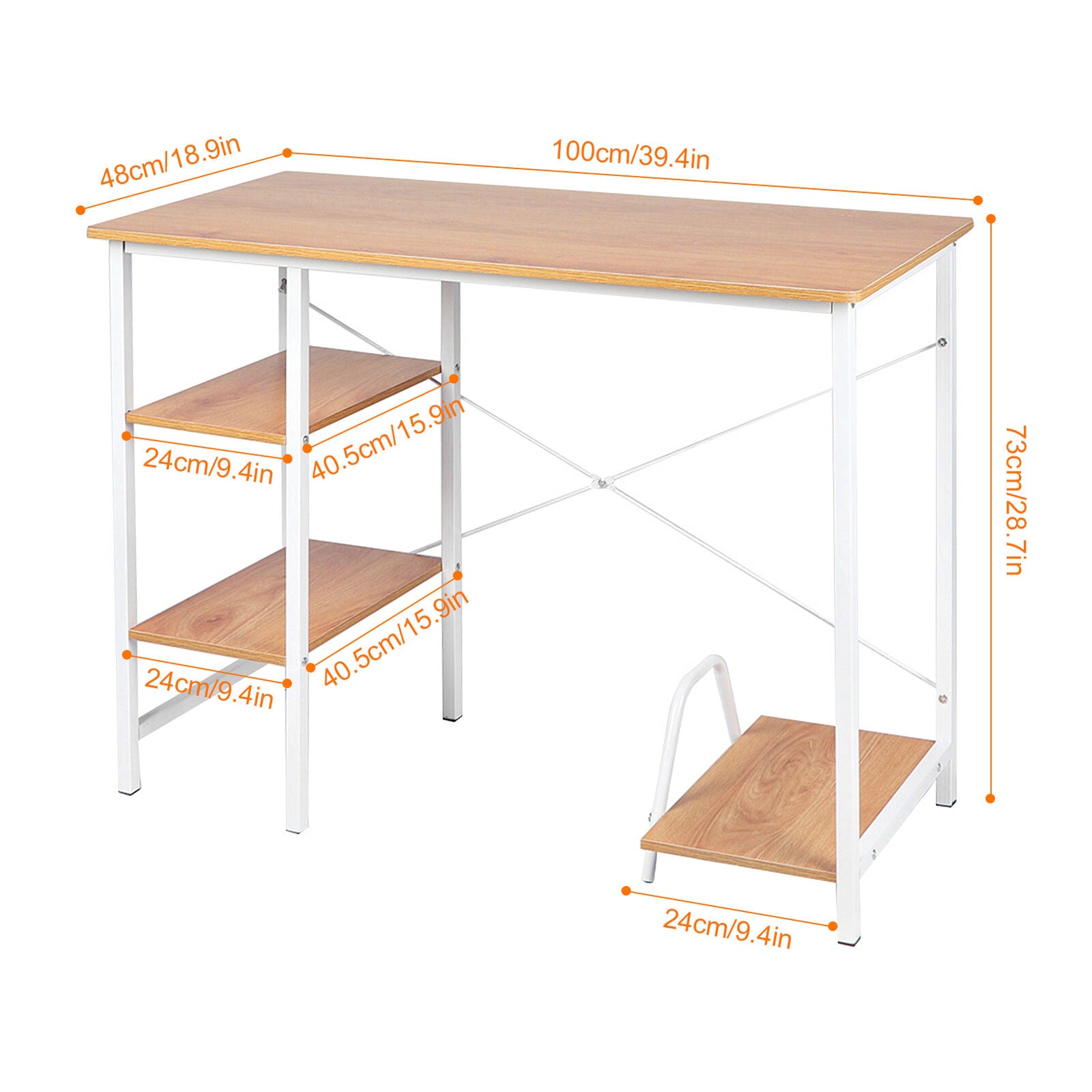 Office Compact Computer Desk Wooden & Metal Table With Bookcase Storage Shelf