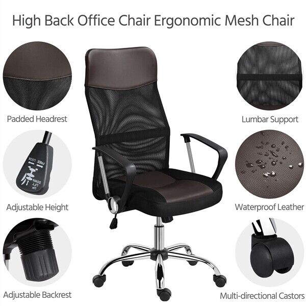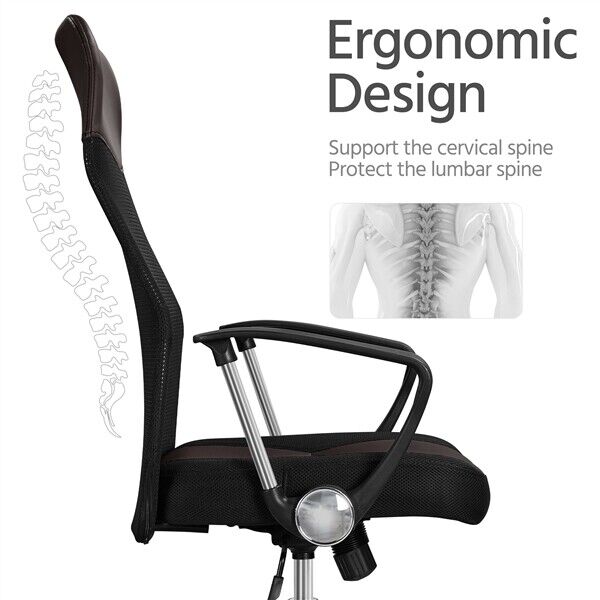 Office Desk Chair Leather Computer Chair with Back Support and Arms Home Study