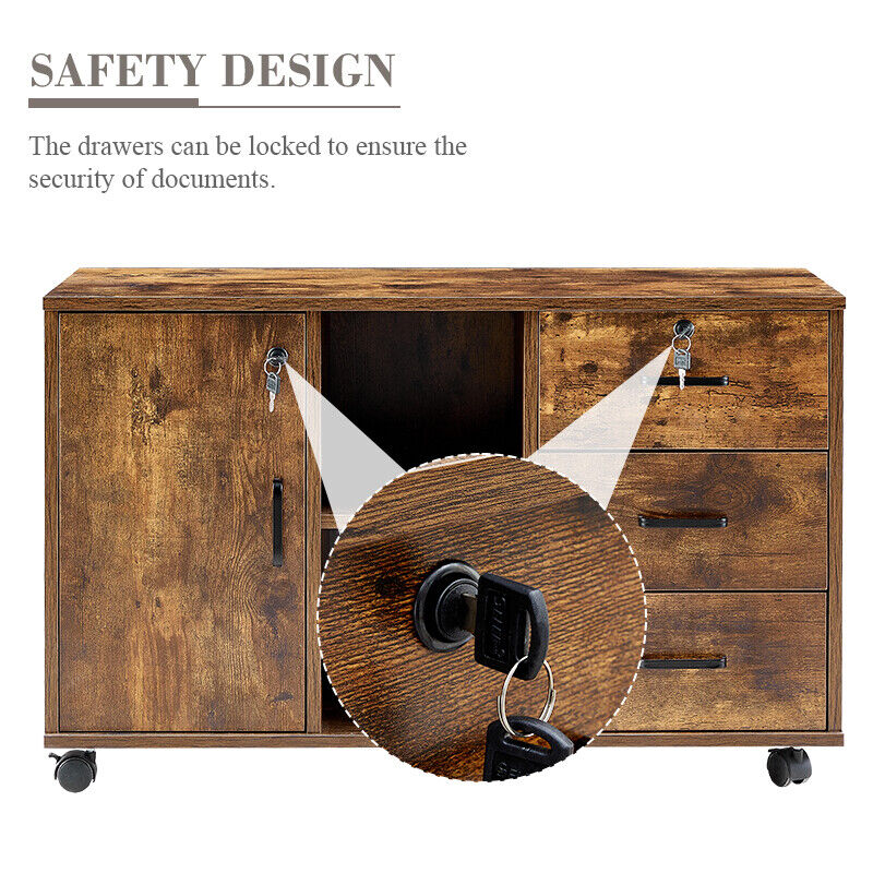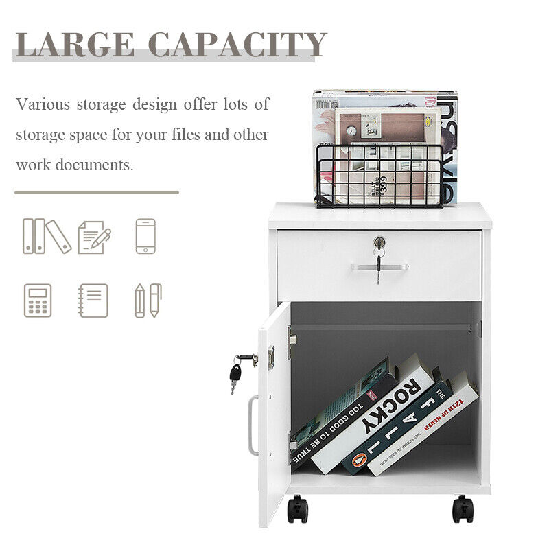 Office Home Filing Cabinet Cupboard on Castors Tools Storage Under / Beside Desk
