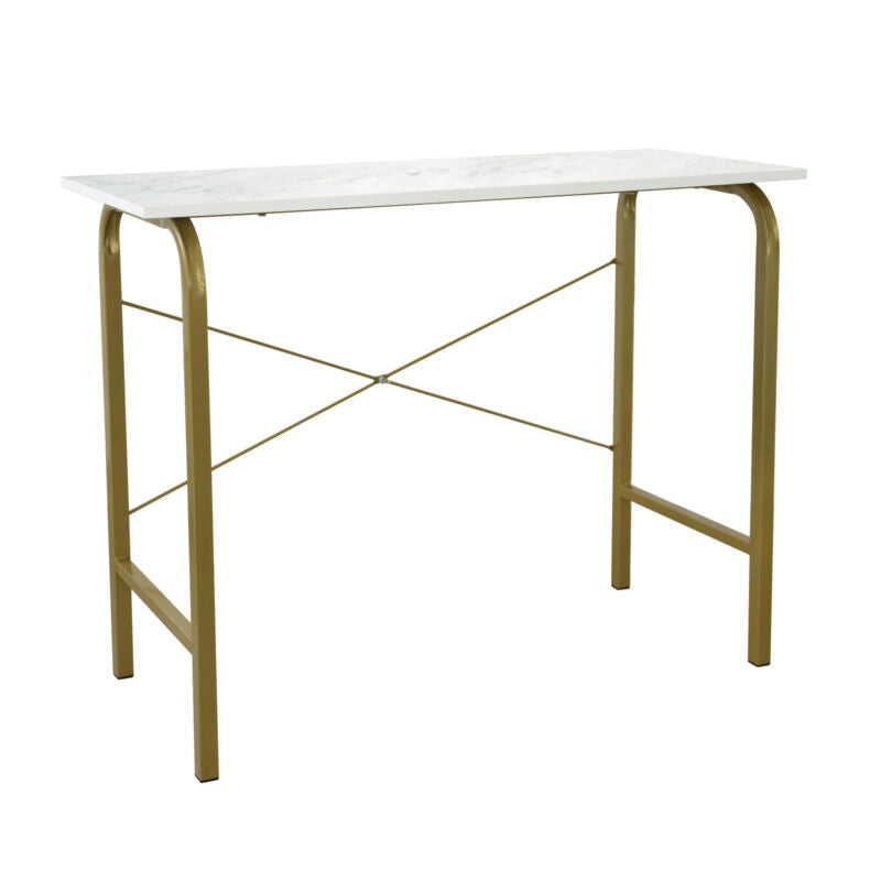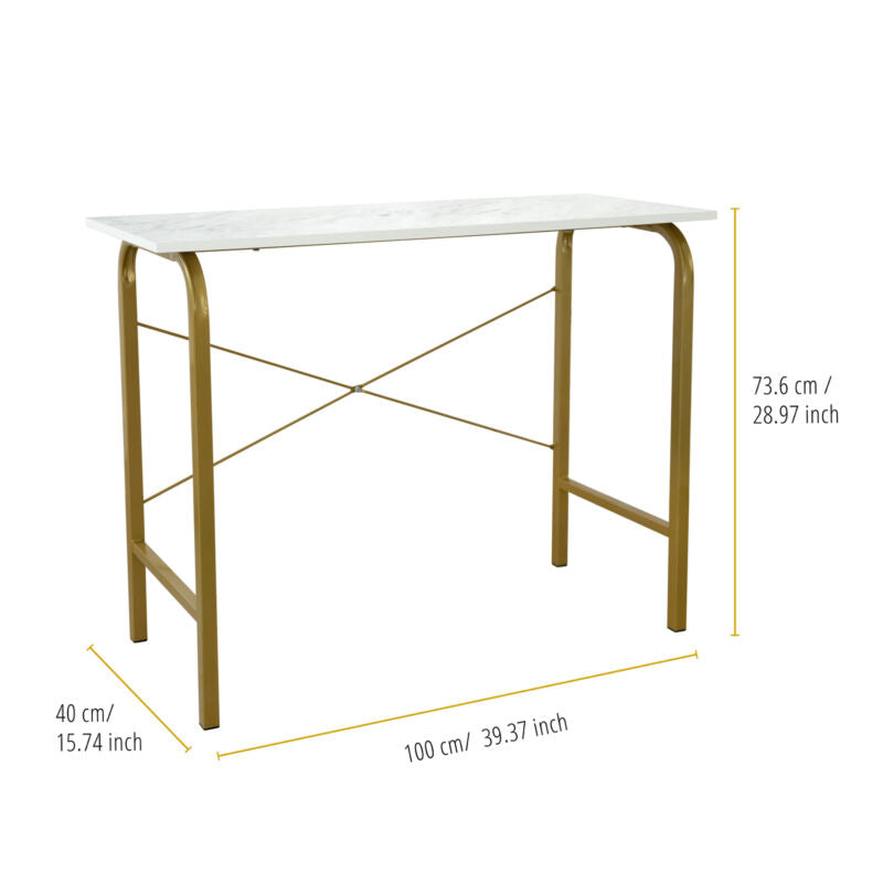 Office Wooden Computer Desk, Study Writing Table, White Faux Marble
