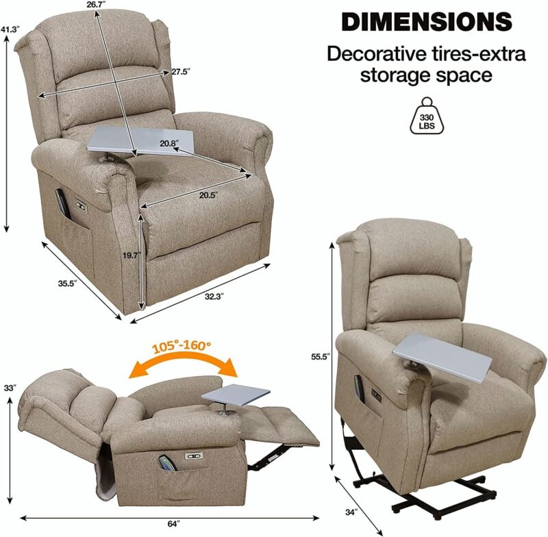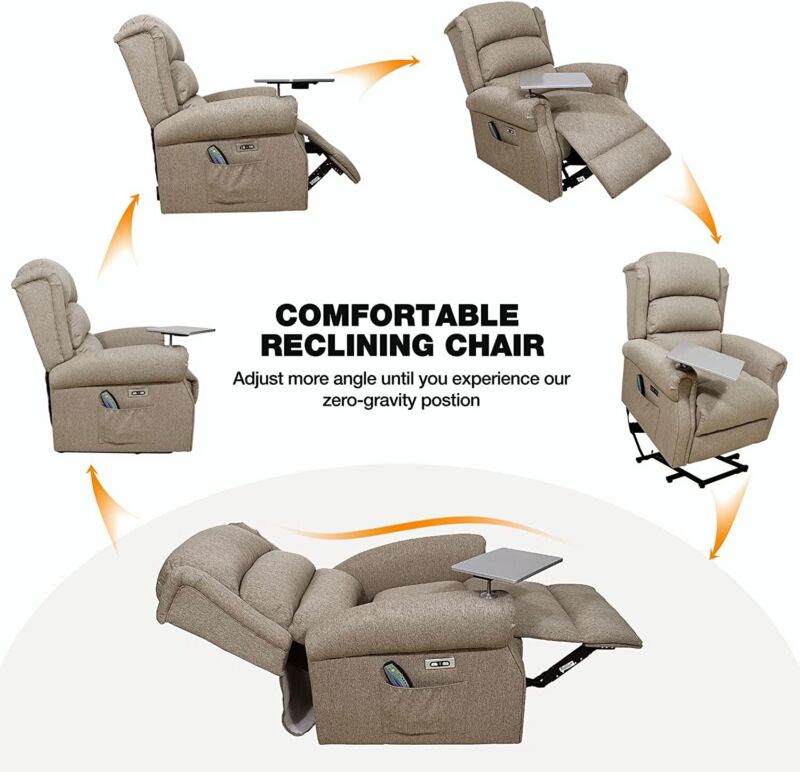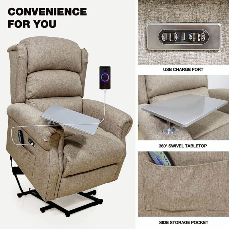 Dual Motor Riser Recliner Lift Massage Chair w/Table and Lumbar Support