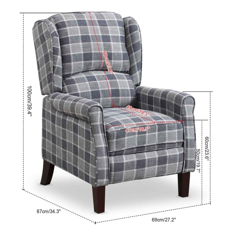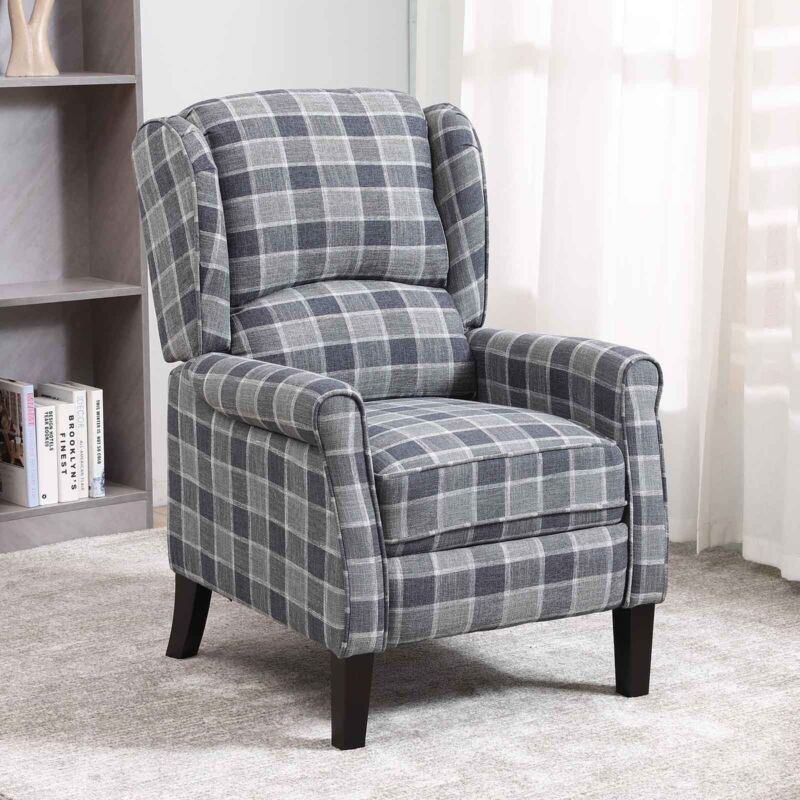 ONPNO Tartan Reclining Chairs Wing Back Armchair For Living Room Dark Grey