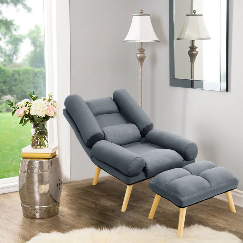 Orthopeadic Fabric High Back Armchair Recliner Lounge Sofa Chair Seat with Stool