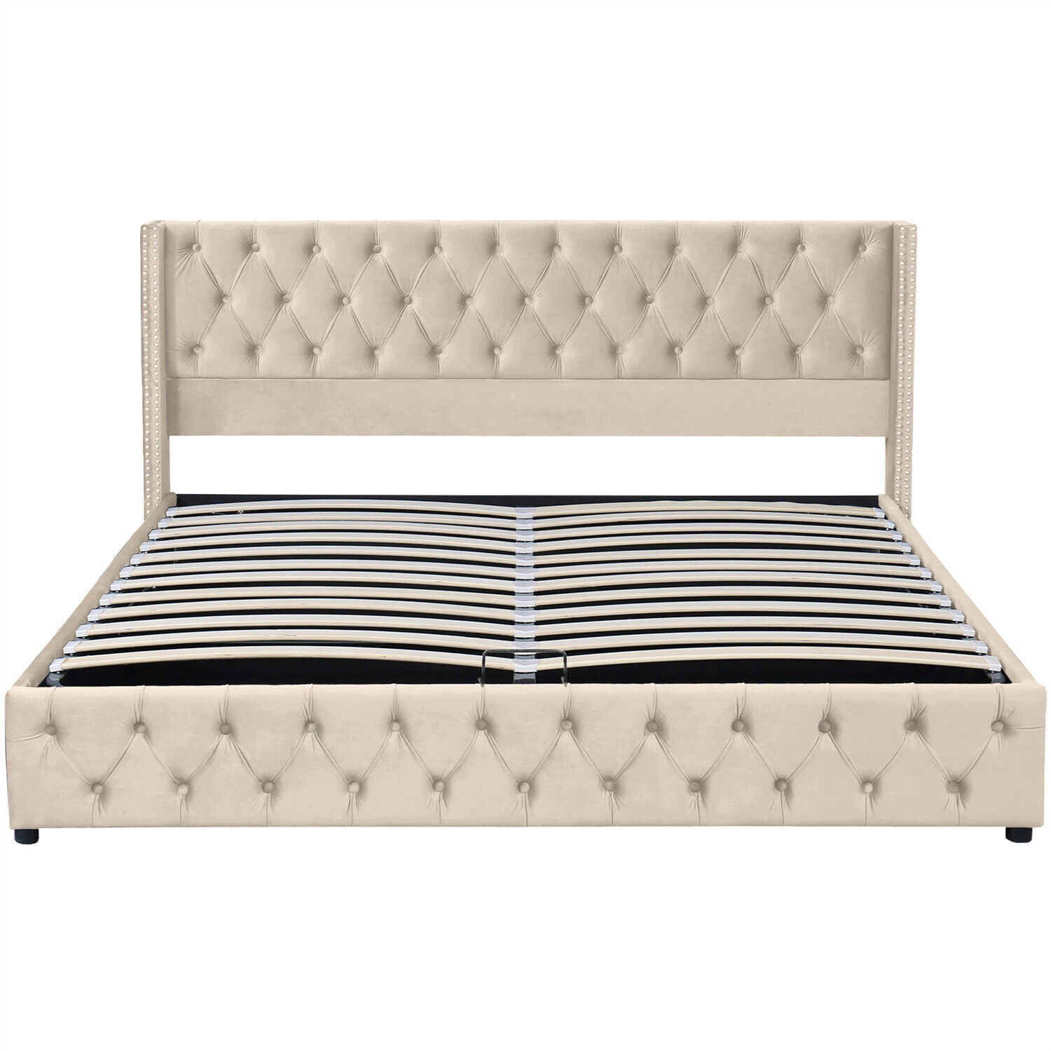 Ottoman Bed Frame Storage Bed Frame 5ft King Size Fabric Velvet Upholstered HT