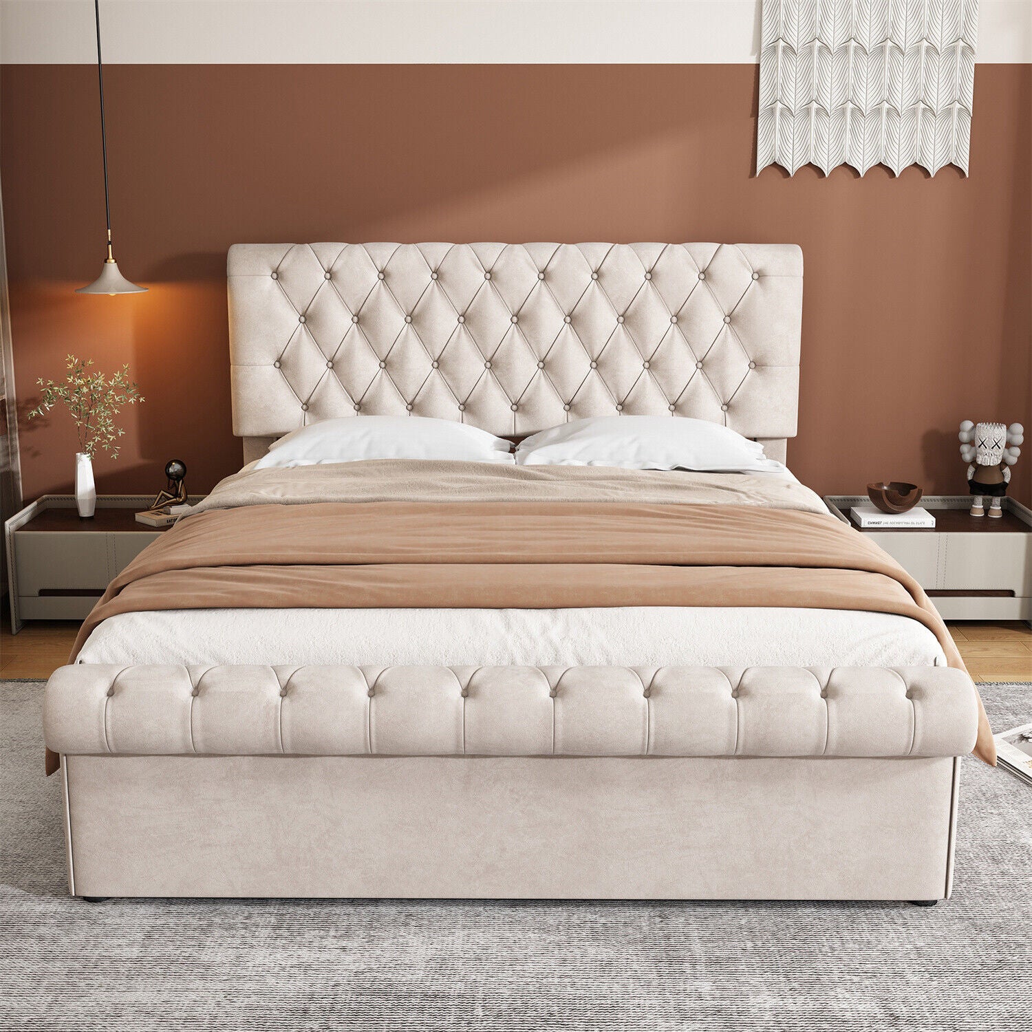 Ottoman Gas Lift Storage Bed Frame Velvet Upholstered 4FT6 5FT DOUBLE KING SIZE
