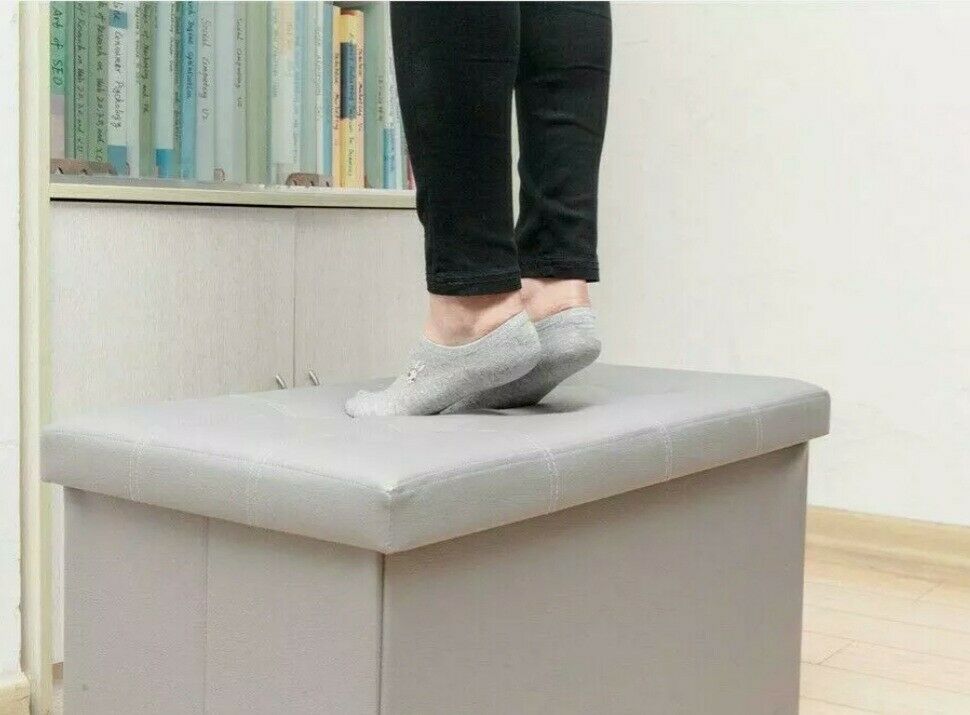 Ottoman storage box Faux Leather Pouffe Double size Cream/Ivory