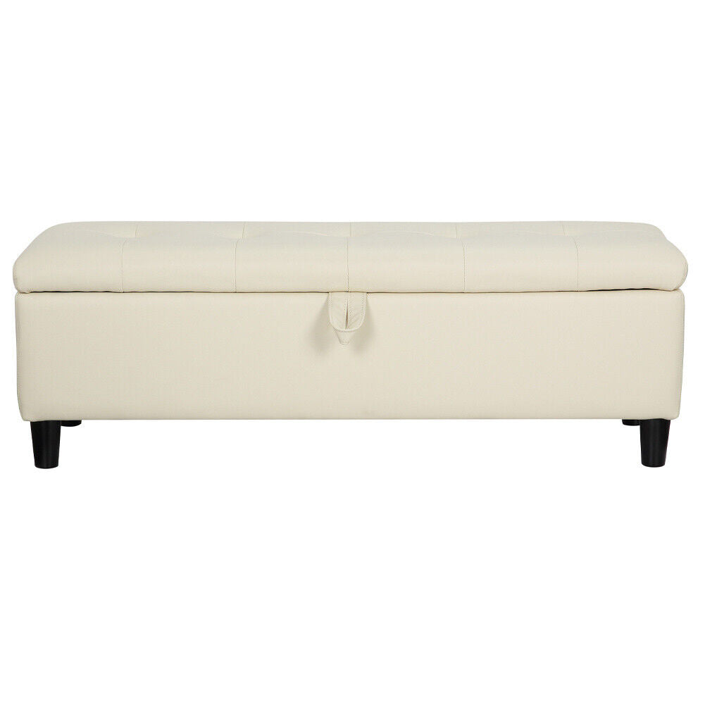 Ottoman Storage Chest Faux Leather Stool Bench Seat Home Furniture Black Cream