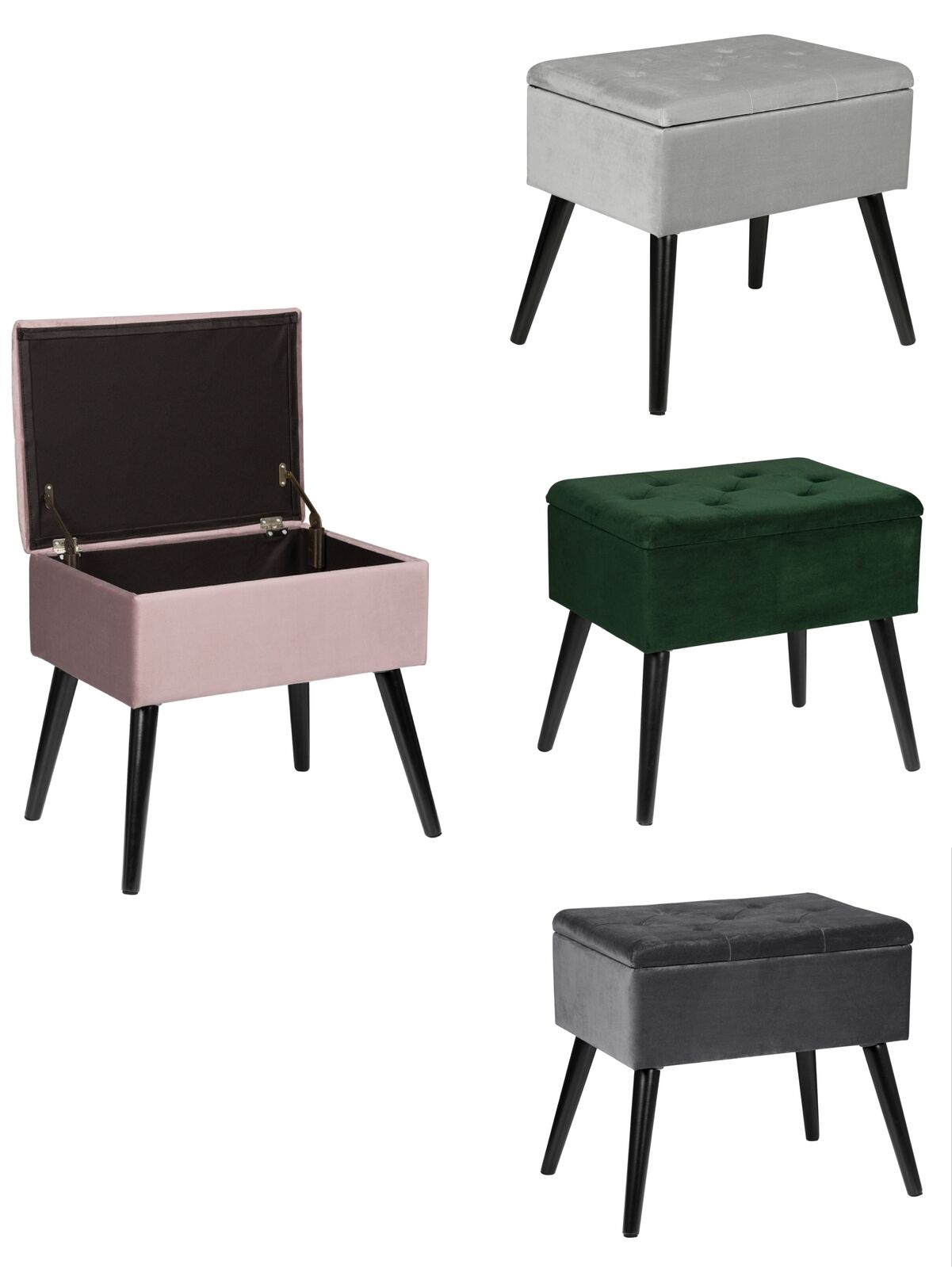 Ottoman Storage Velvet+MDF Toy Box Pouffe Seat Foot Stool With lid grey/pink