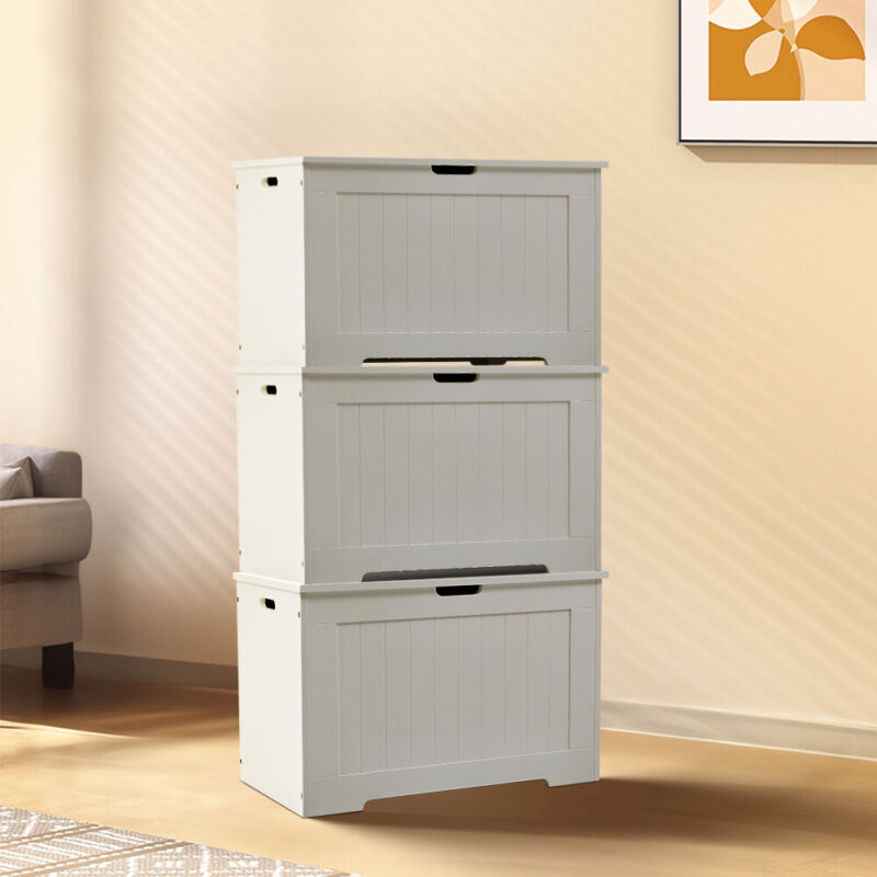 Ottoman Wooden Stackable Toy Box White Storage Unit Chest Bedroom Nursery Trunks
