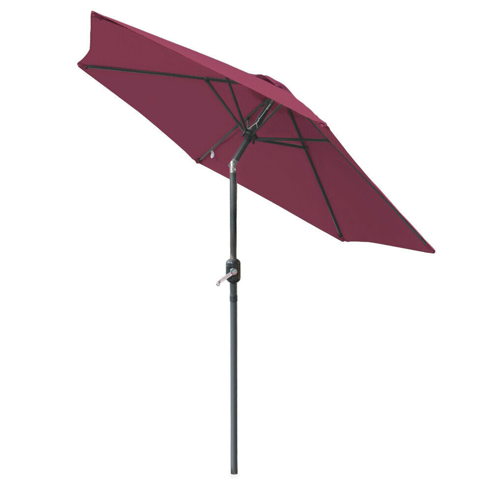 Outdoor 2.5M Garden Parasol Patio Round Sun Shade Umbrella Crank Canopy Wine Red