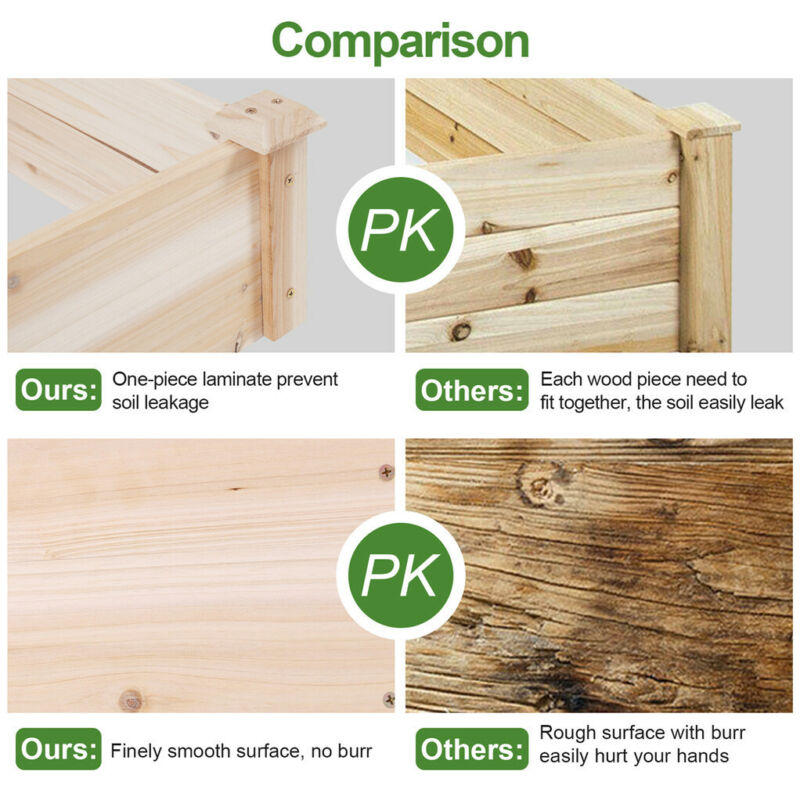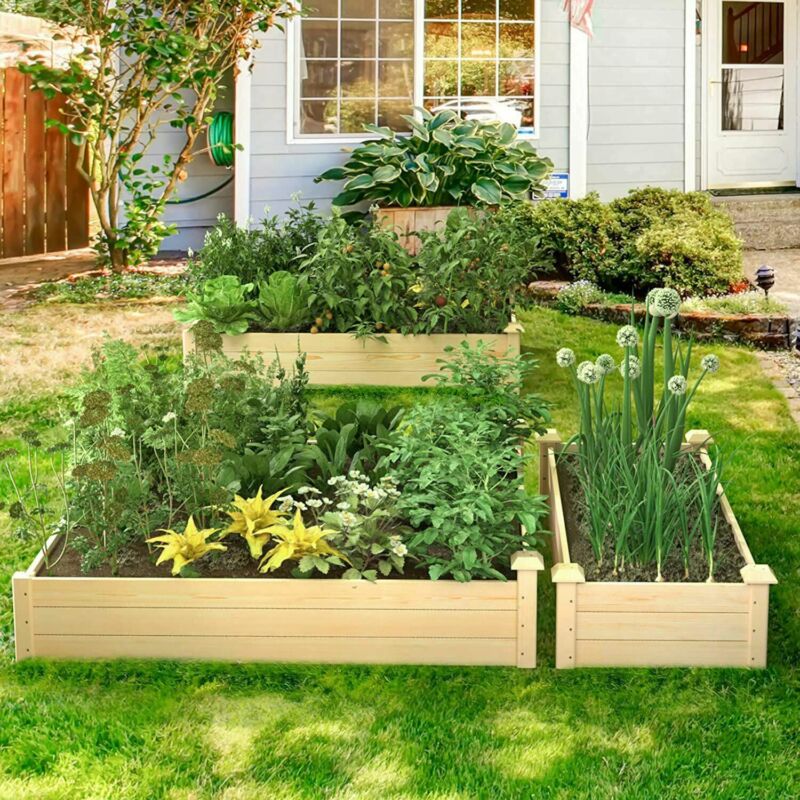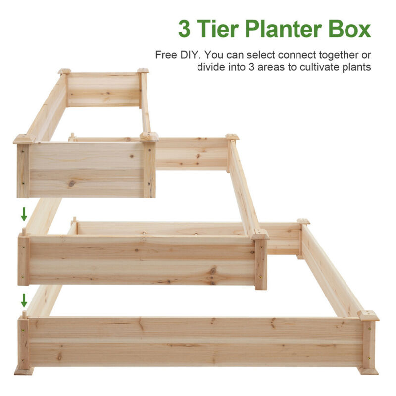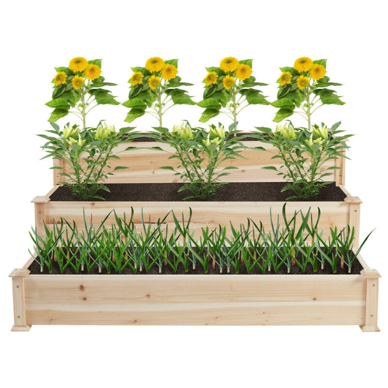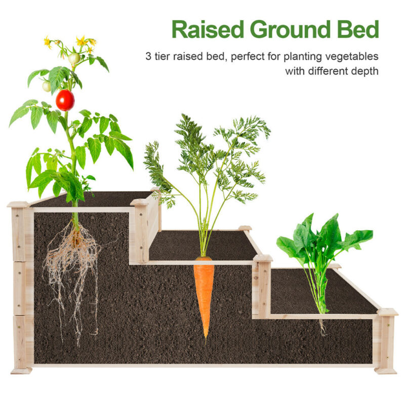 Outdoor 3 Tier Raised Garden Bed Wooden Planter Kit Stackable Large Growing Bed