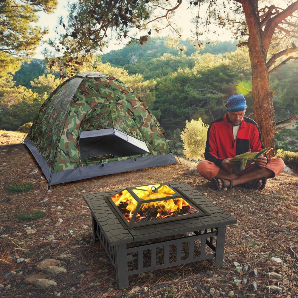 Outdoor Fire Pit BBQ Firepit Brazier Garden Square Table Stove Patio Heater 81cm