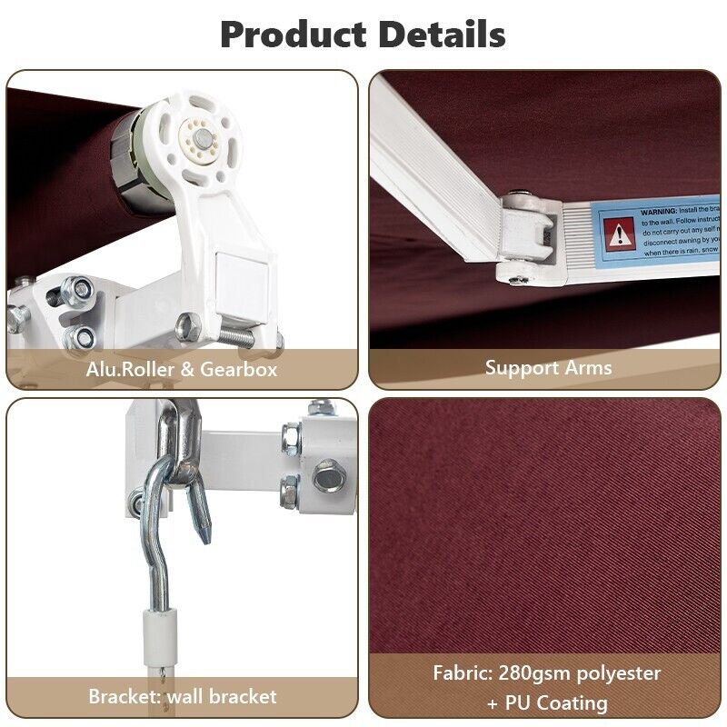 Outdoor Garden Awning Manual Canopy Patio Retractable Sun Shade Shelter400X300cm