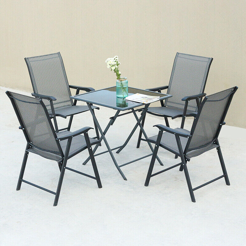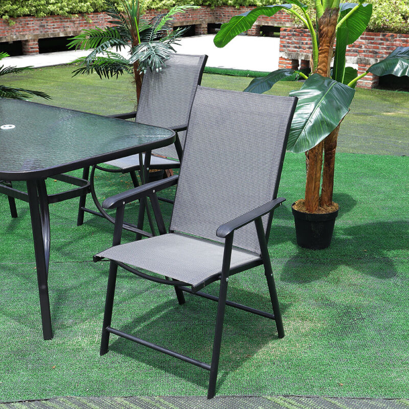 Outdoor Garden Black Fabric Folding Dining Chairs Set Patio Furniture 4/6 Seater