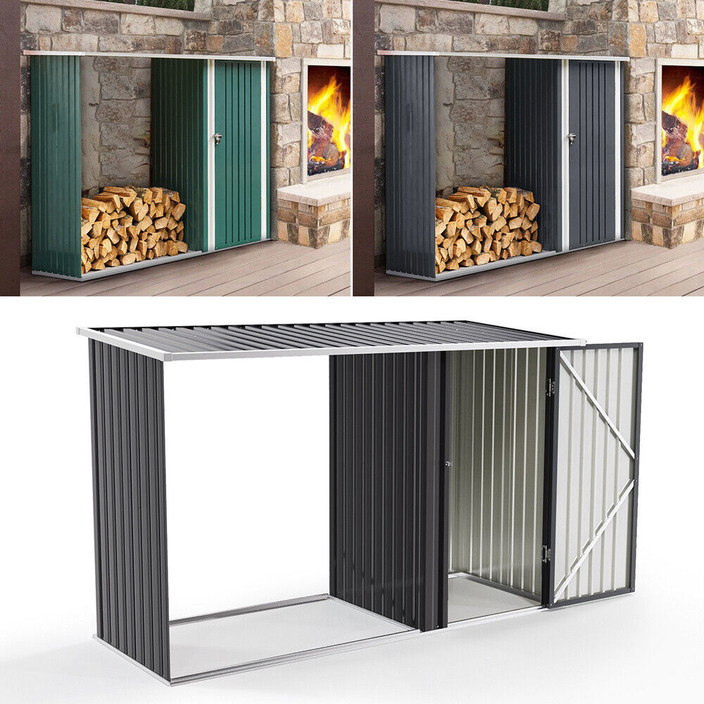 Outdoor Garden Firewood Wood Log Storage Shed Tool Box with Lockable Door, Roof