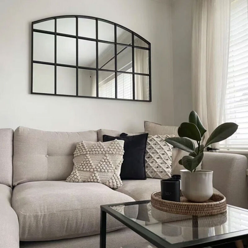 Outdoor Garden Mirror Arch Metal Black Frame Hanging Wall Mounted Home Décor