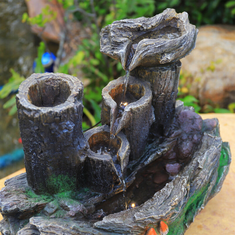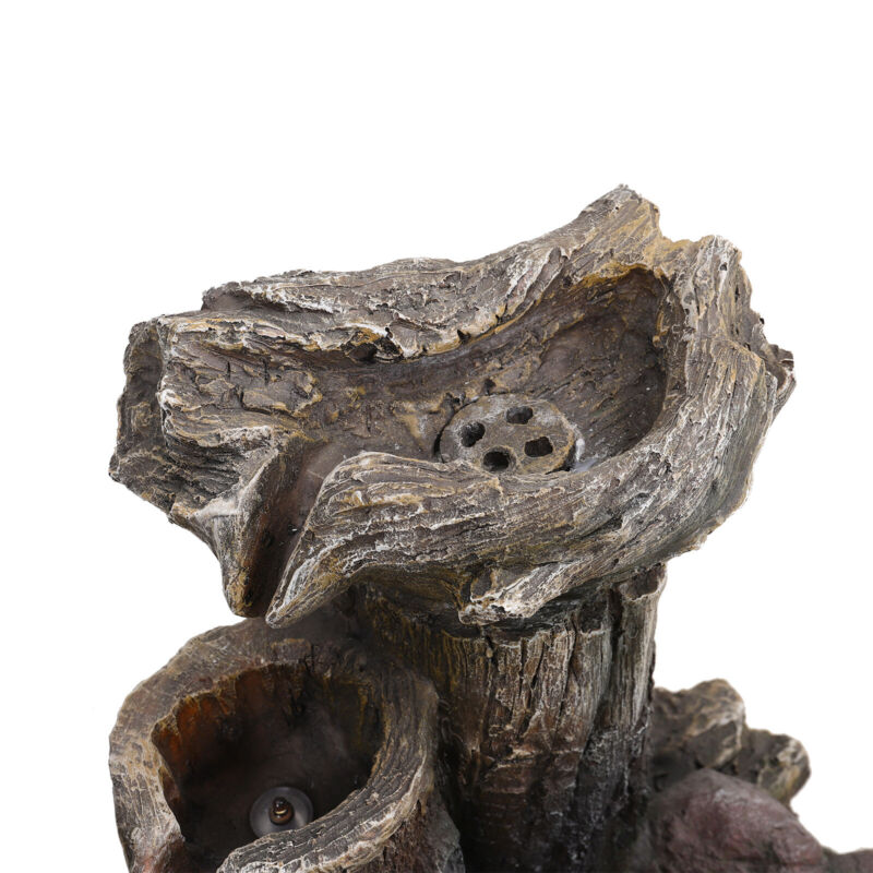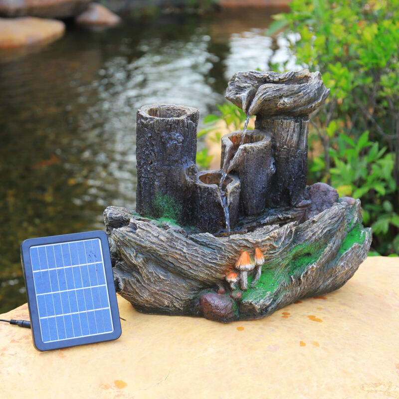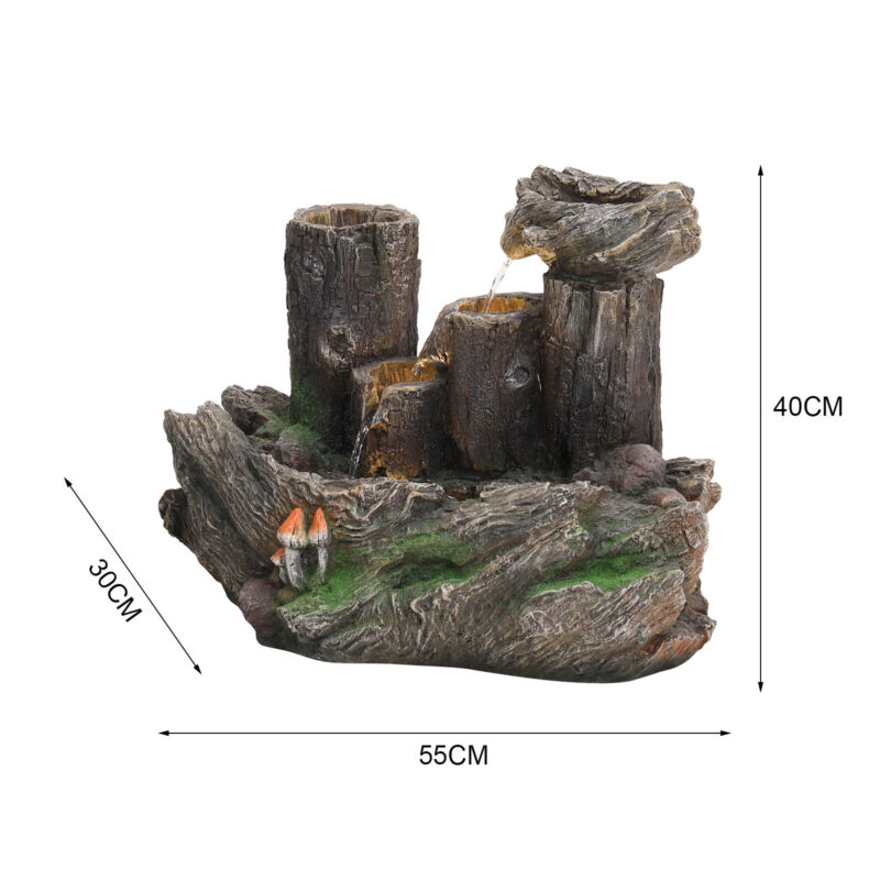 Outdoor Garden Water Feature LED Lighting Wooden Effect Fountain Solar Powered