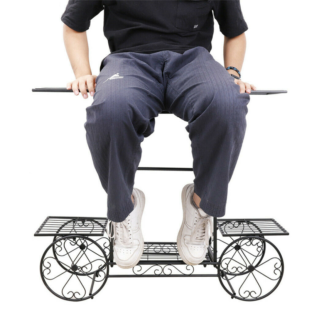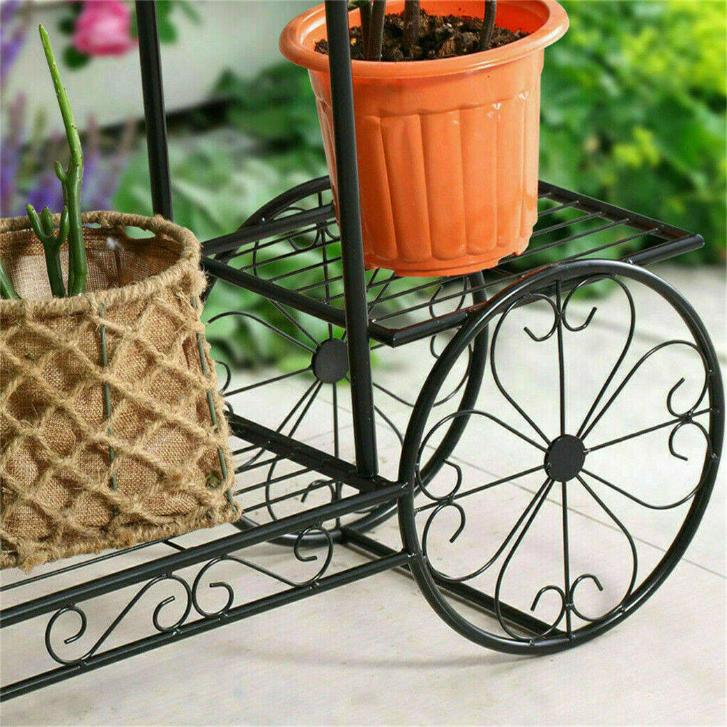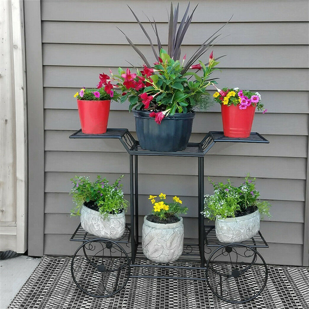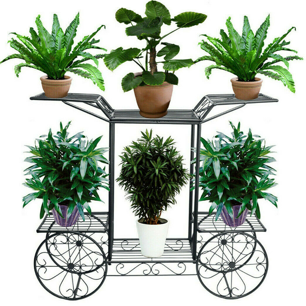 Outdoor Indoor Pot Plant Stand Garden Decor Flower Rack Wrought Iron 4 Wheeler
