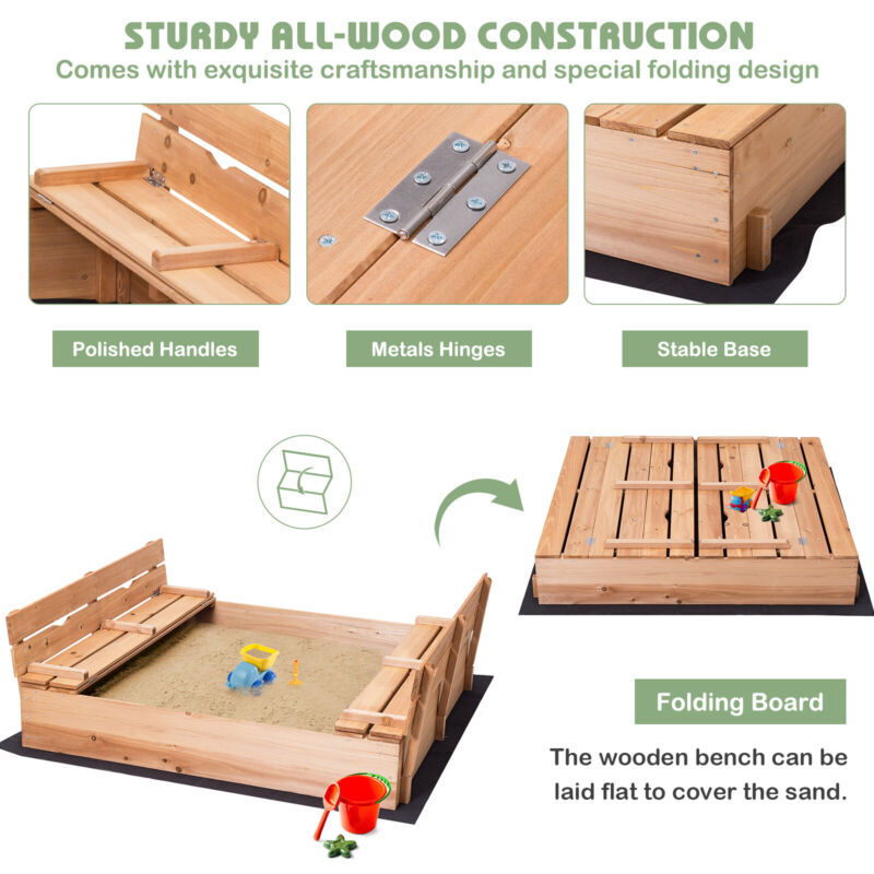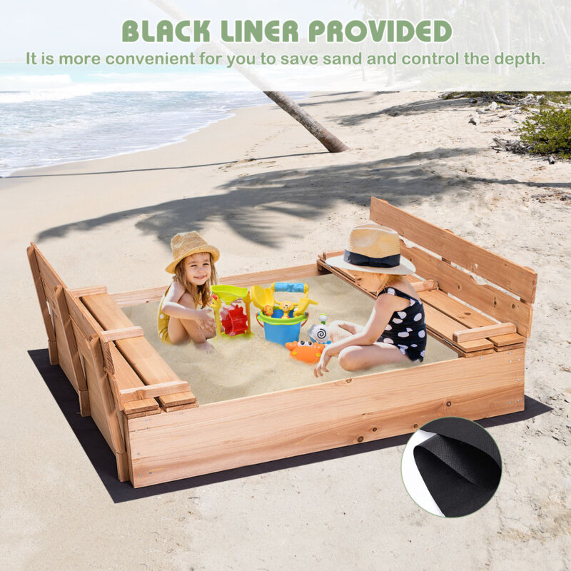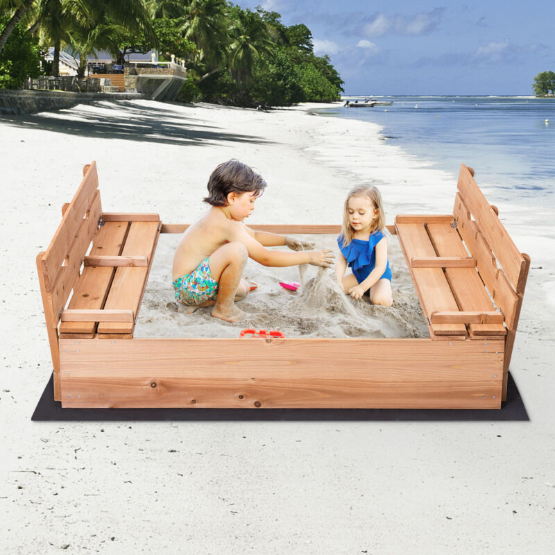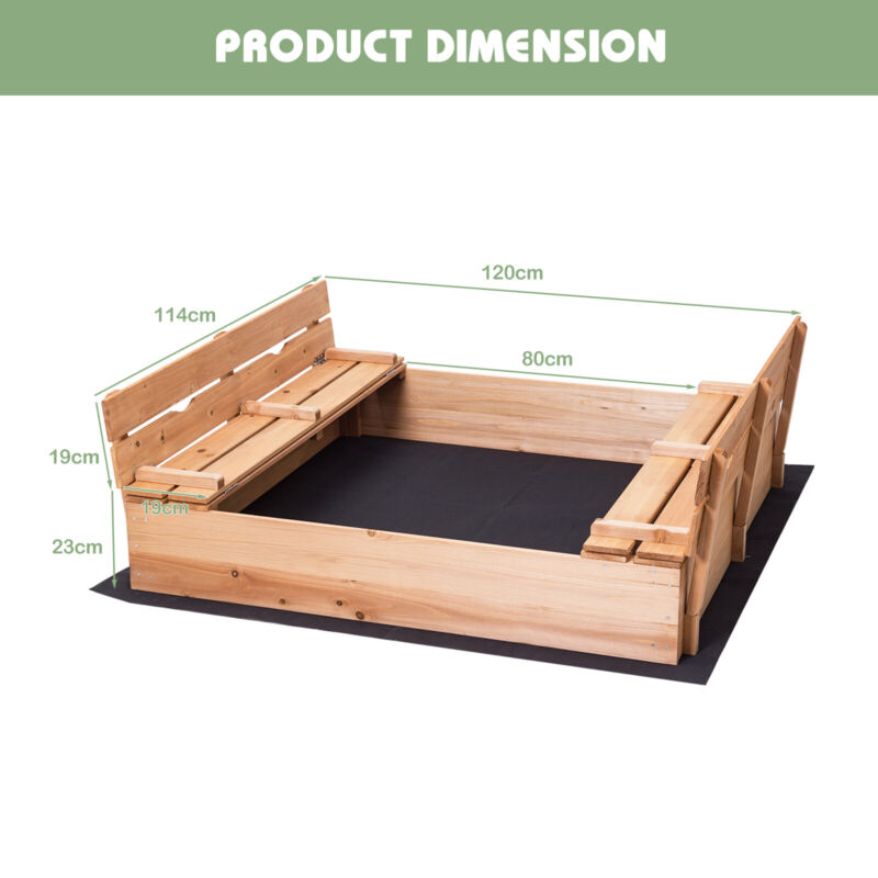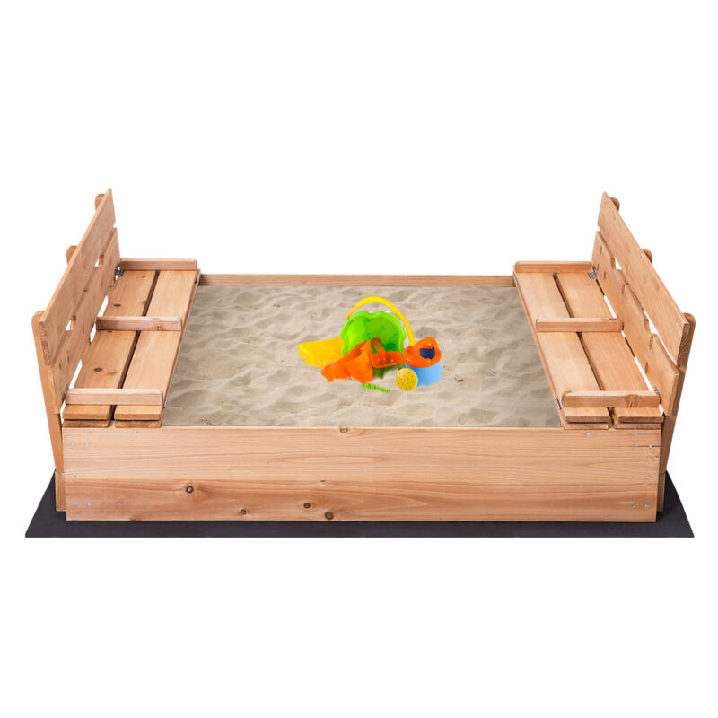 Outdoor Kids Sand Pit Ball Box Convertible Cedar Sandbox 2 Foldable Bench Seats