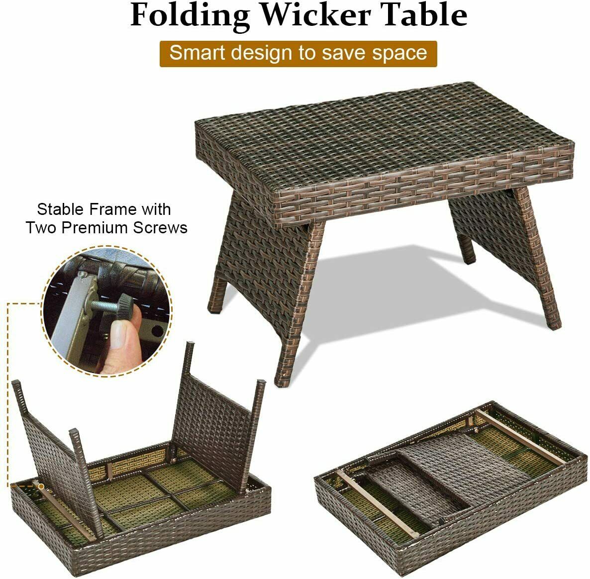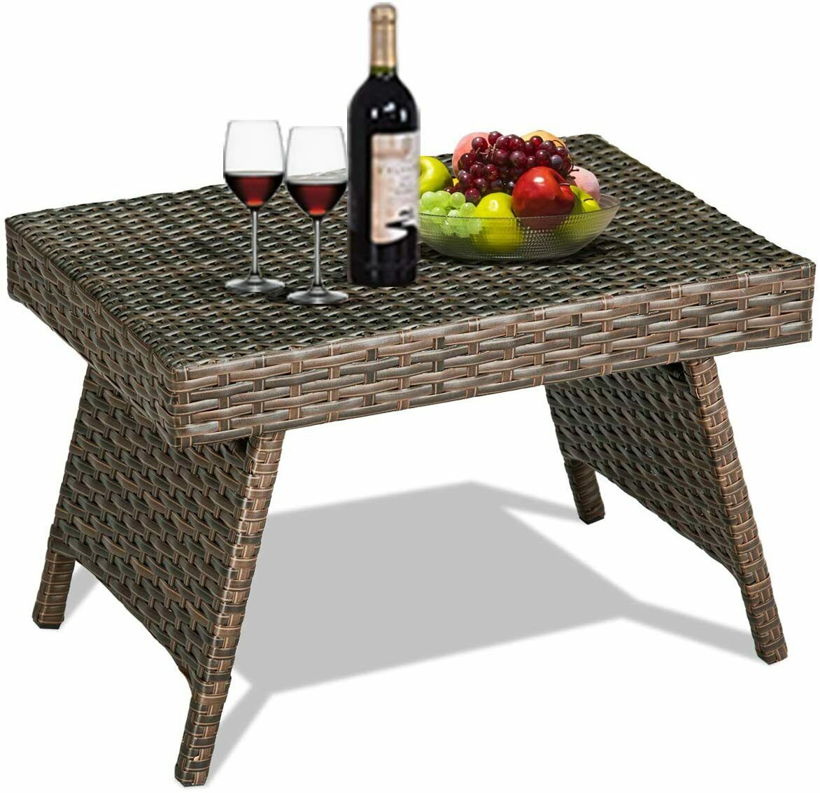 Outdoor Patio Rattan Wicker Coffee Table Poolside Garden Folding Side End Table