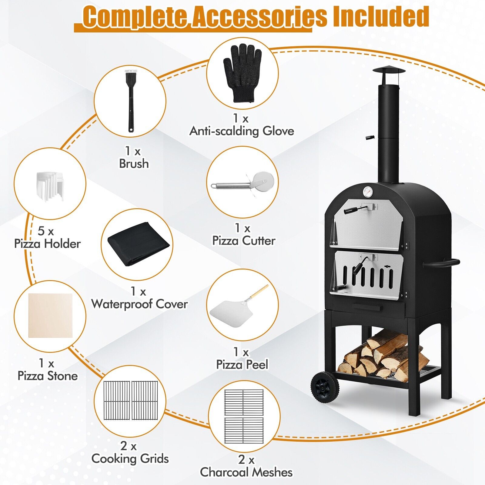 Outdoor Pizza Oven Wood-fired Pizza Maker Pizza Stone with Waterproof Cover