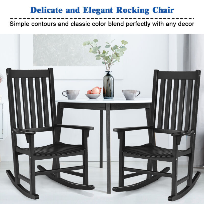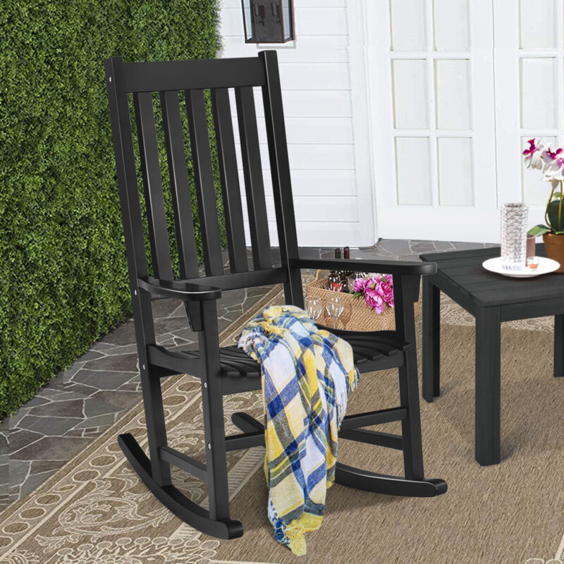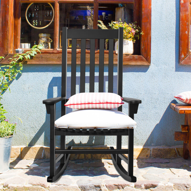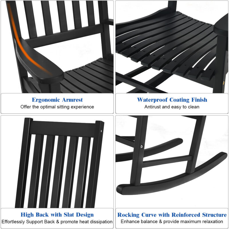 Outdoor Rocking Chair Wooden Frame Porch Chair Garden Balcony Backyard Black