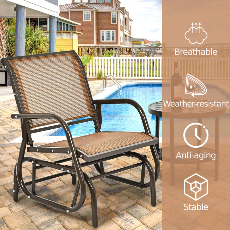 Outdoor Swing Glider Chair Patio Rocking Chair Single w/ Study Metal Frame Brown