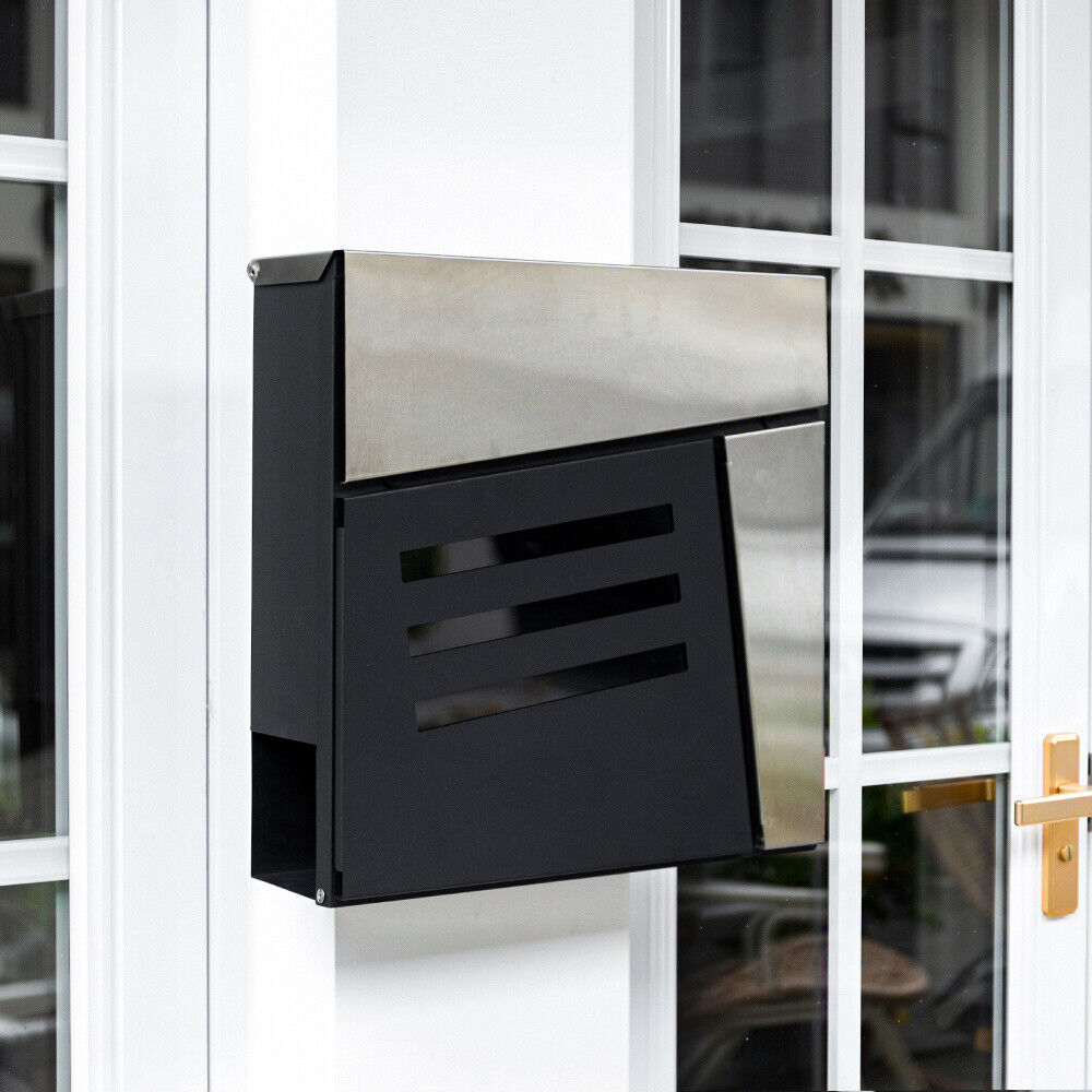Outdoor Wall Mounted Mailbox Lockable Metal Mail Letter Post Secure Box Postbox