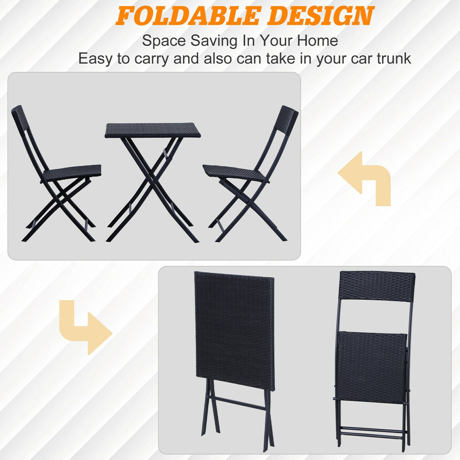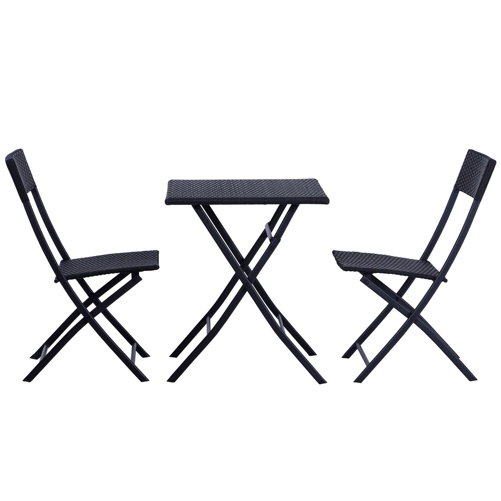 Outsunny 3PC Bistro Set Rattan Furniture Outdoor Garden Folding Chair Table