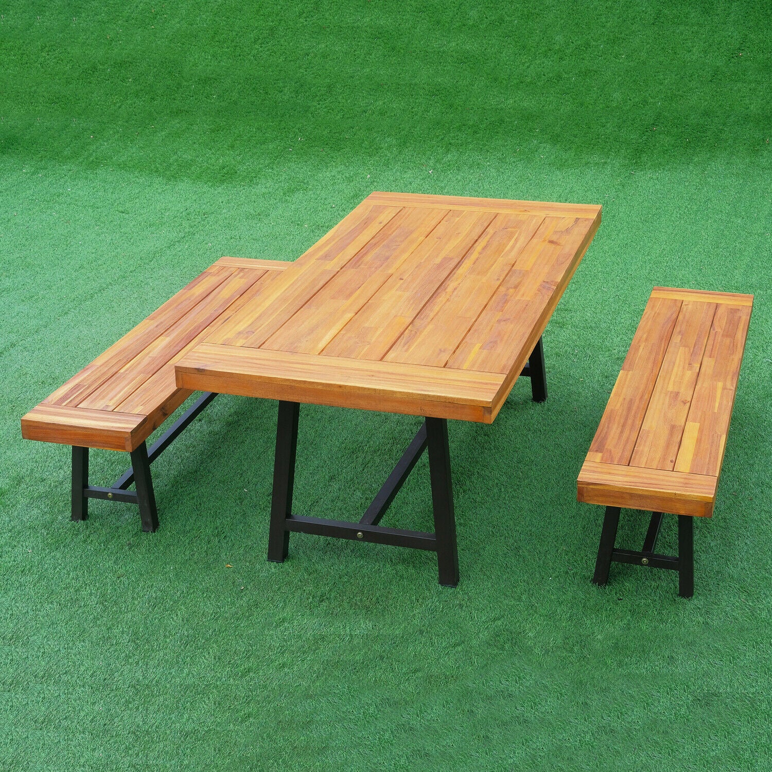 Outsunny 3PC Garden Wood Dining Set Outdoor Picnic Table Bench Chair Camping BBQ