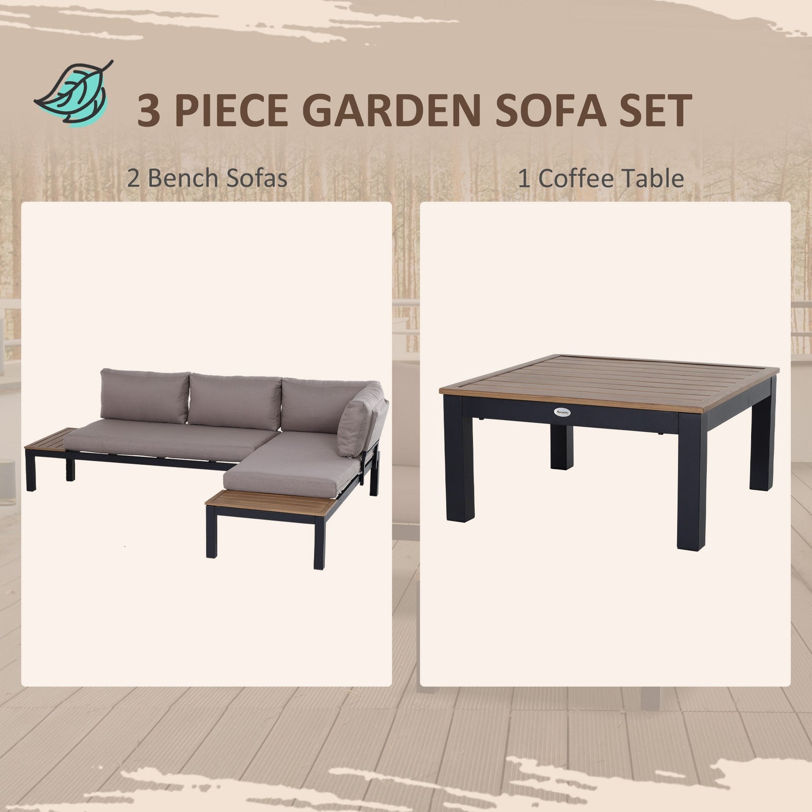 3pcs Garden Sectional Sofa Side Table Furniture Set w/ Cushion