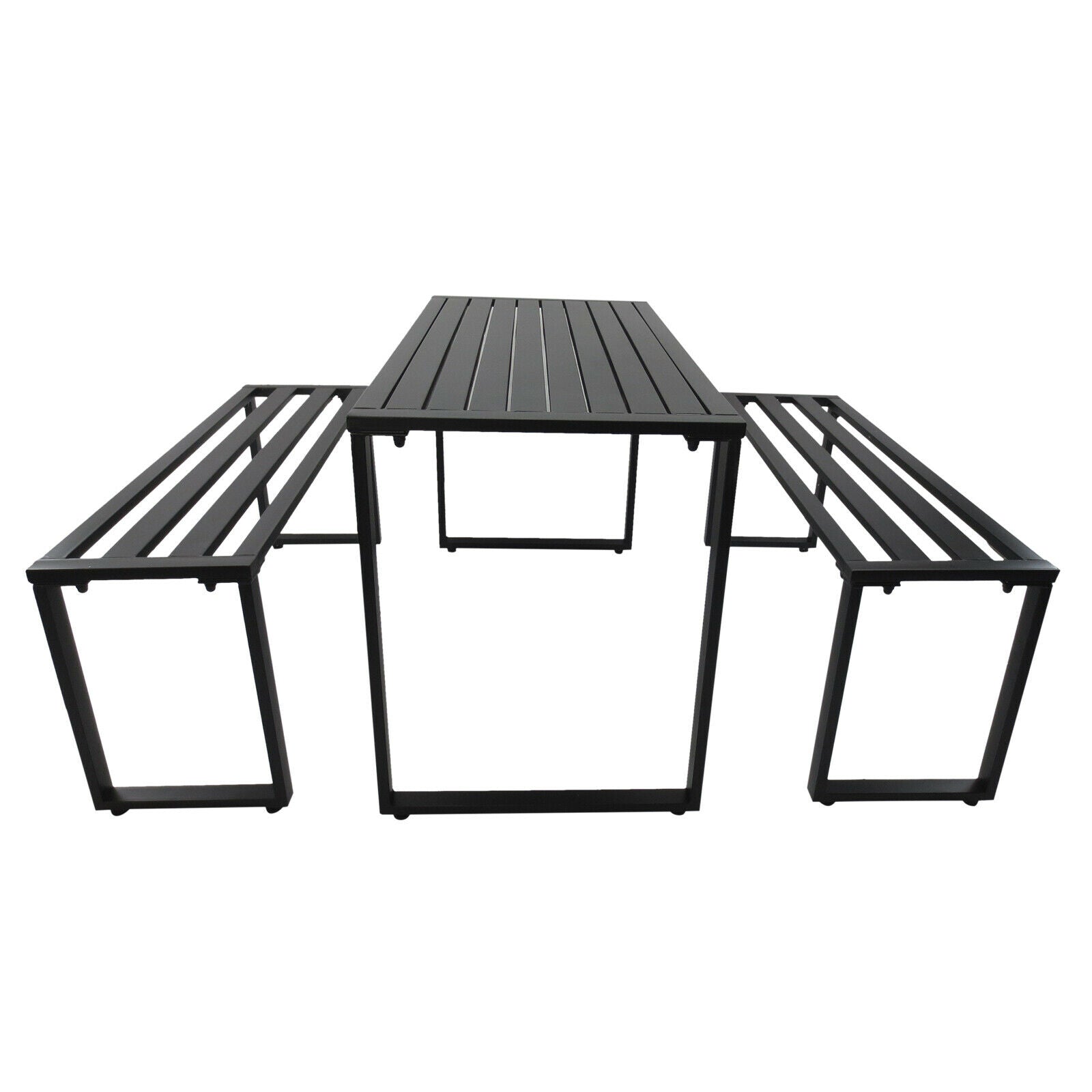 Outsunny 3Pcs Outdoor Dining Set Metal Beer Table Bench Patio Garden Yard