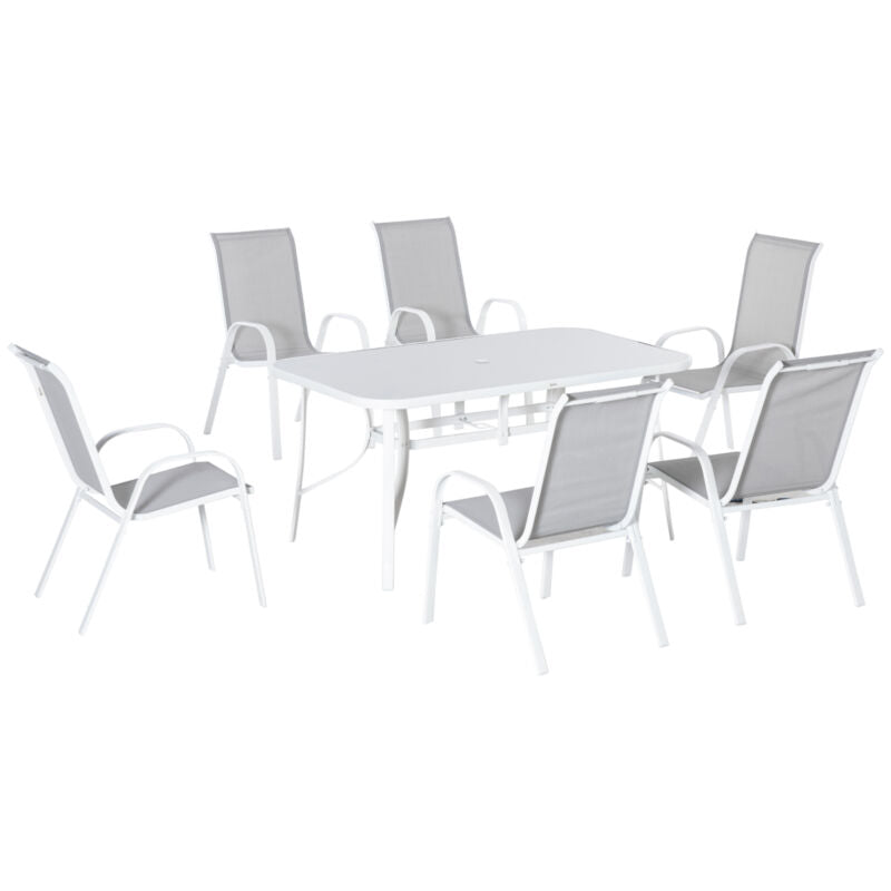 7 Piece Garden Dining Set w/ Dining Table and Chairs for Backyard Grey