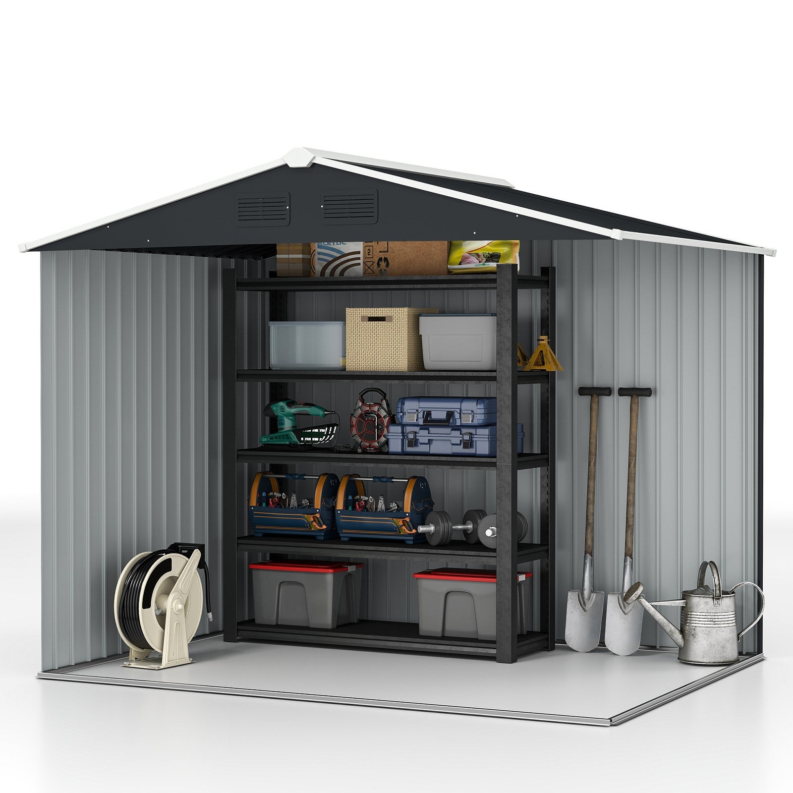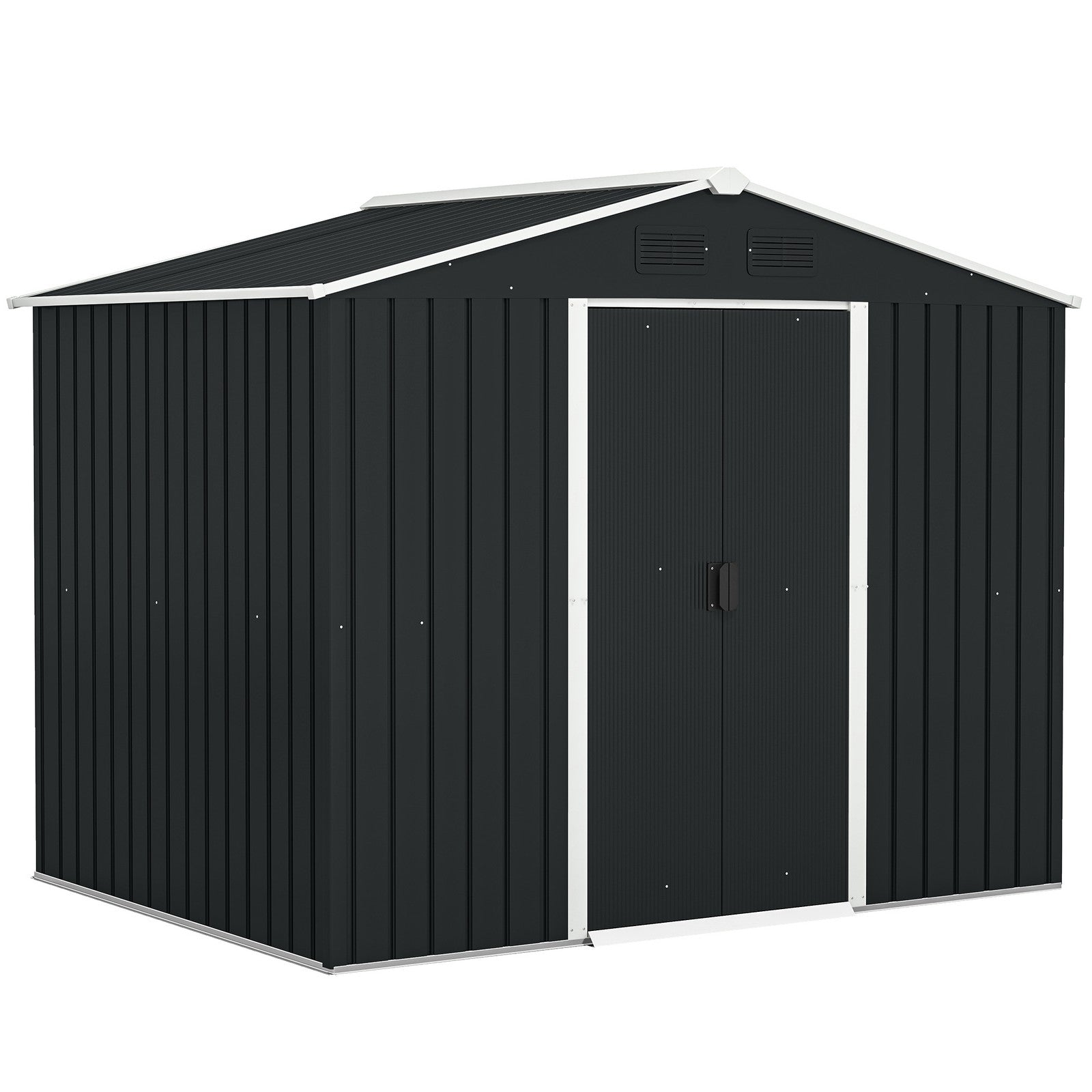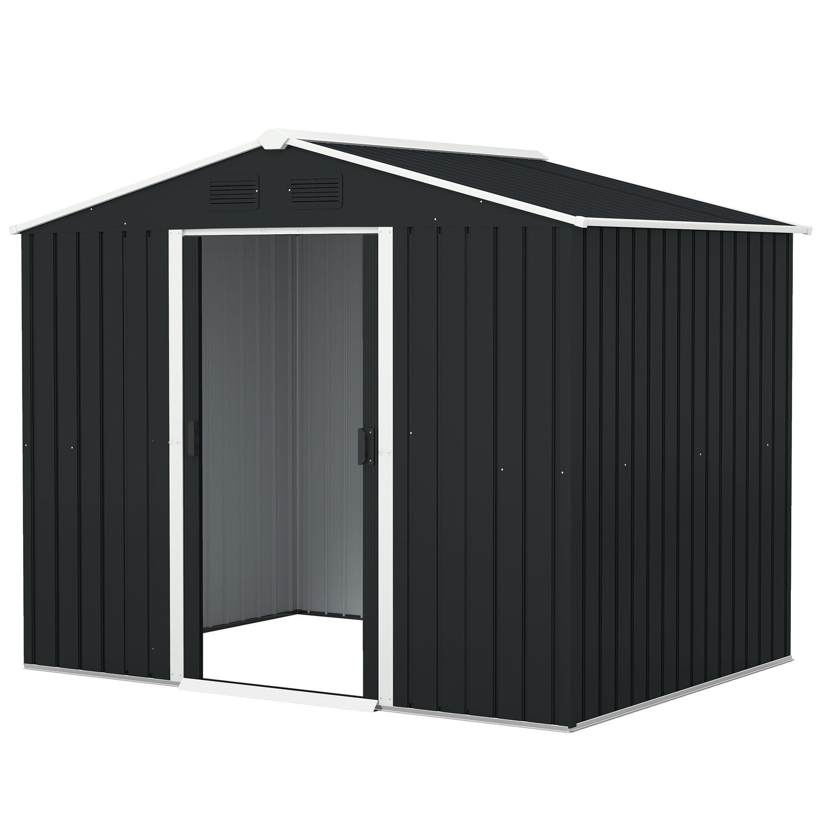 8 x 6ft Garden Storage Shed with Double Sliding Door Outdoor Grey