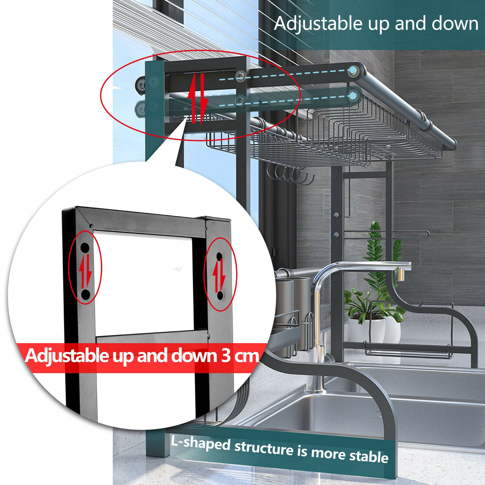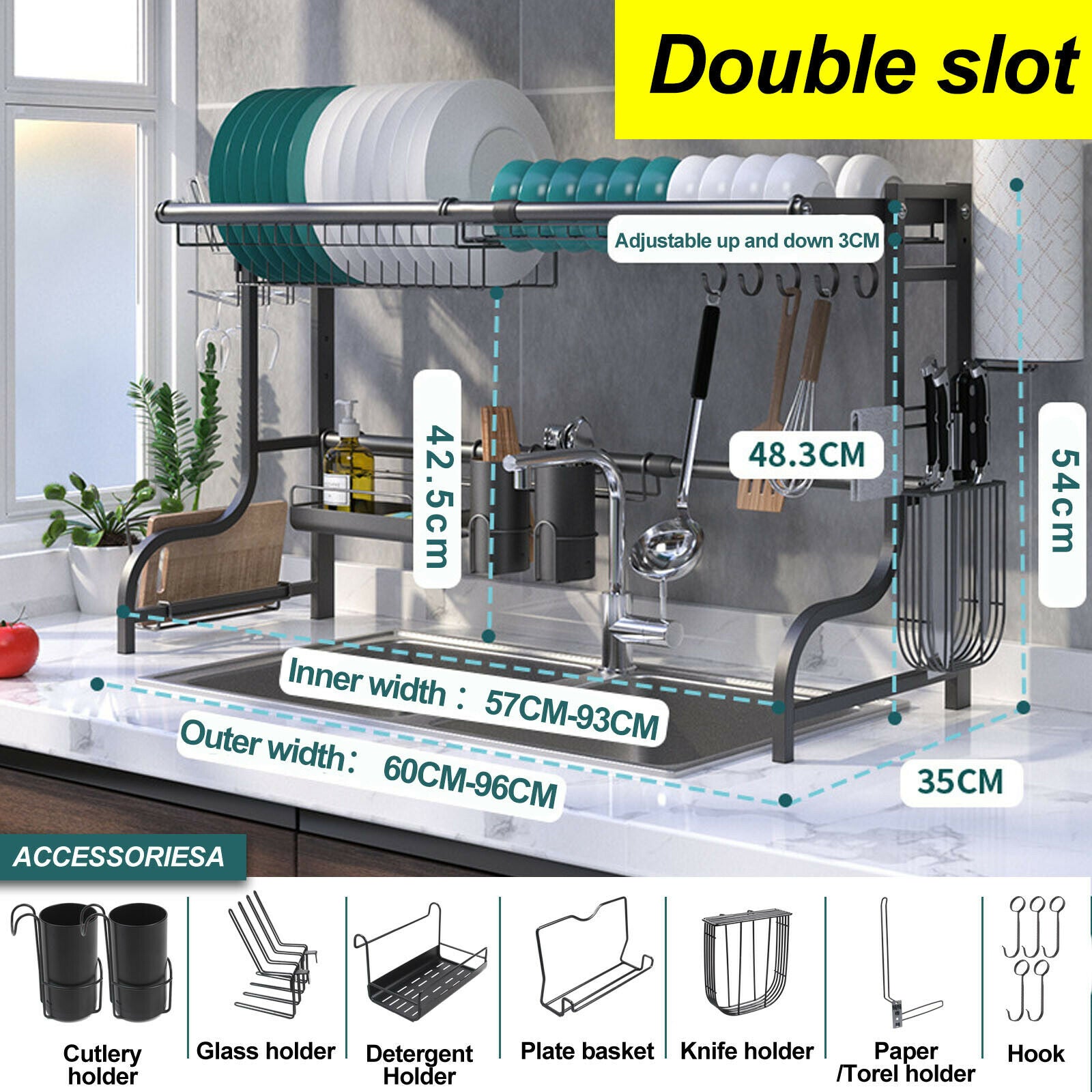 Over The Sink Drying Rack Adjustable 60-96cm Kitchen Stainless Dishes Drainer UK