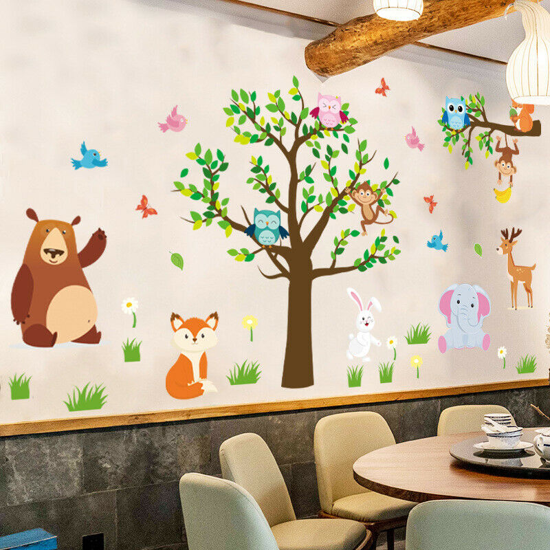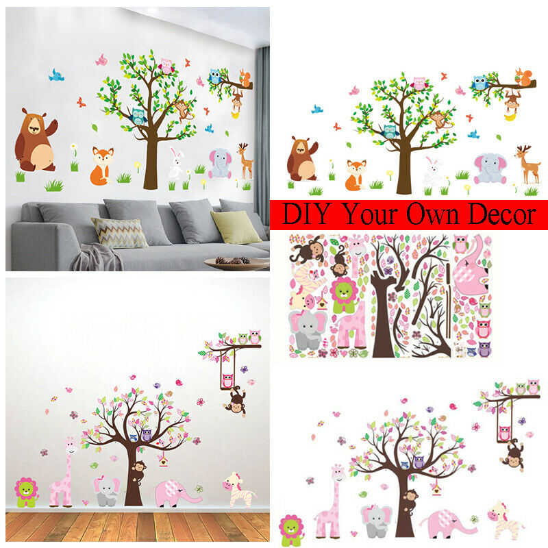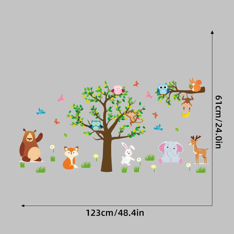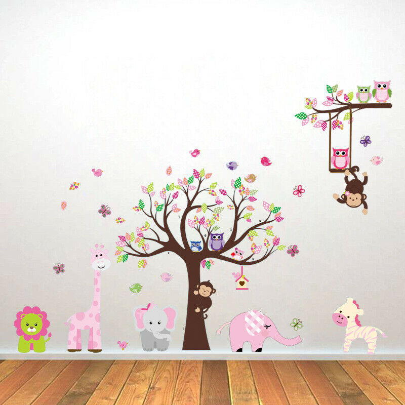 Owl Wall Stickers Tree Jungle Zoo Woodland Nursery Baby Kids Bedroom Art Decal