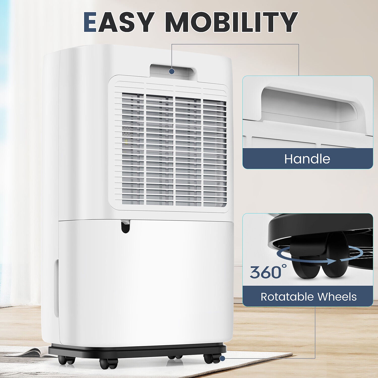 25L Dehumidifier For Mould and Moisture Extraction Quiet 36dB with Wheels