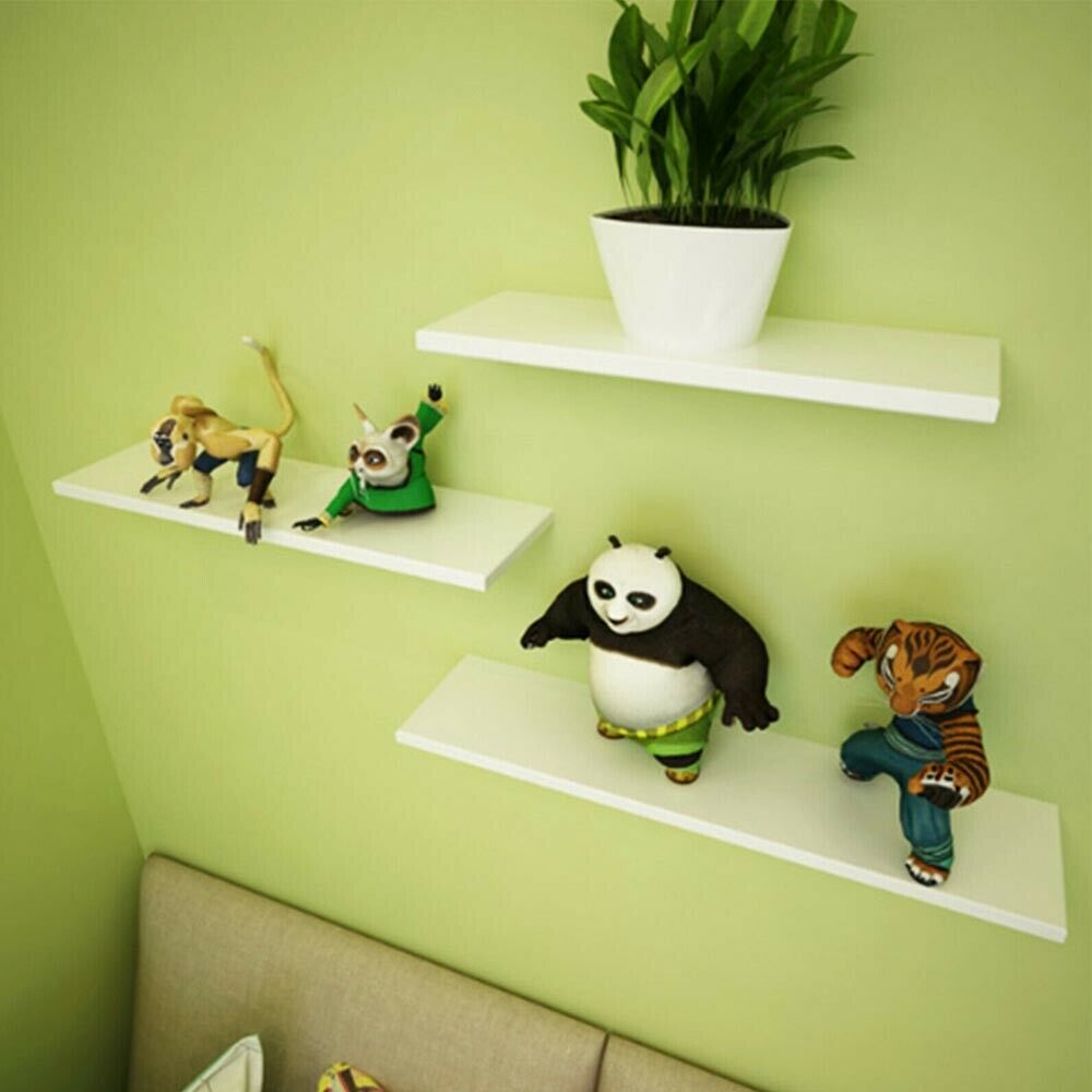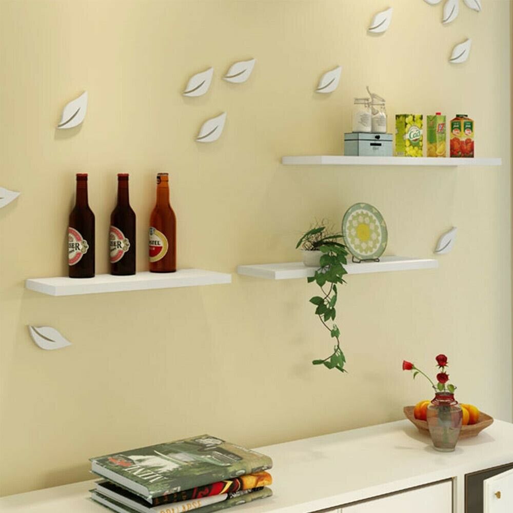 Pack of 3 Floating Wooden Wall Shelves Shelf Wall Storage 80cm - White New Uk