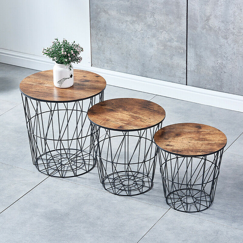 Pack of 3 Round Nested Geometric Wire Occasional Side End Table Storage Basket