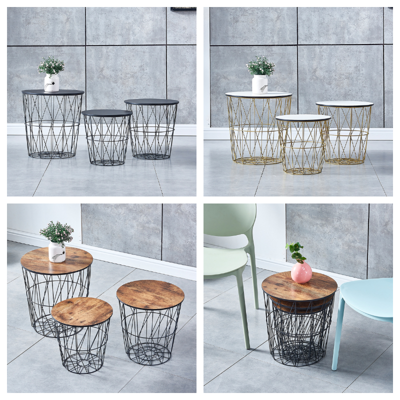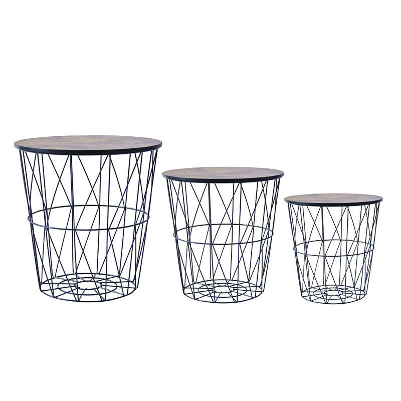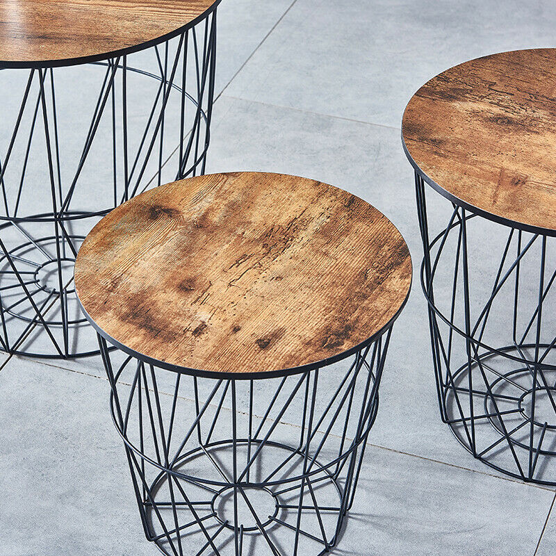 Pack of 3 Round Nested Geometric Wire Occasional Side End Table Storage Basket