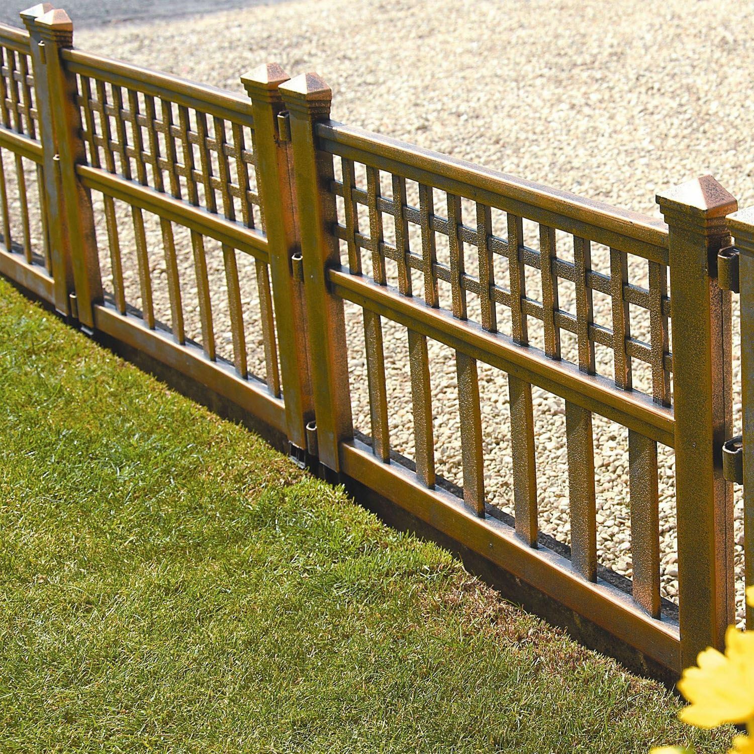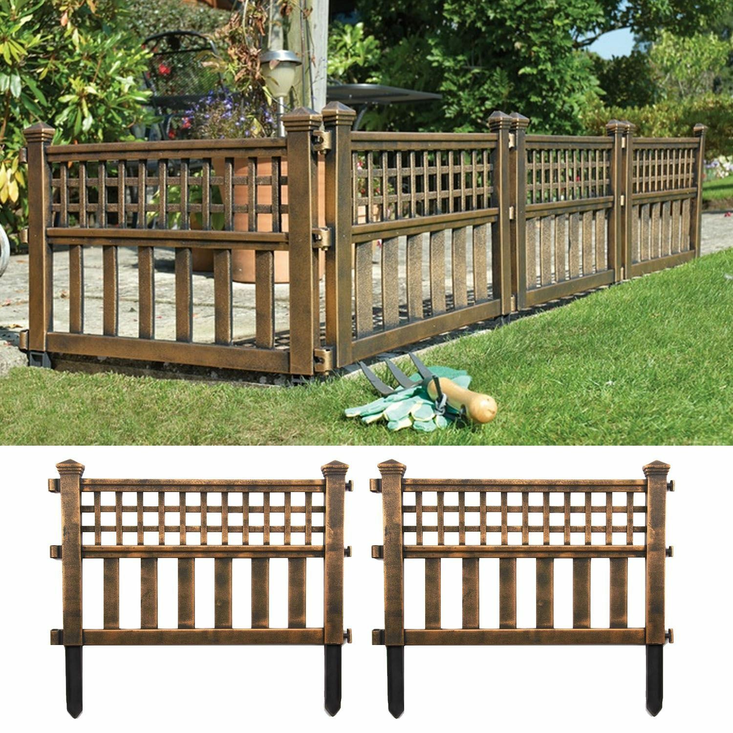 Pack of 4 Bronze Plastic Fence Panels Garden Lawn Edging Plant Border Landscape