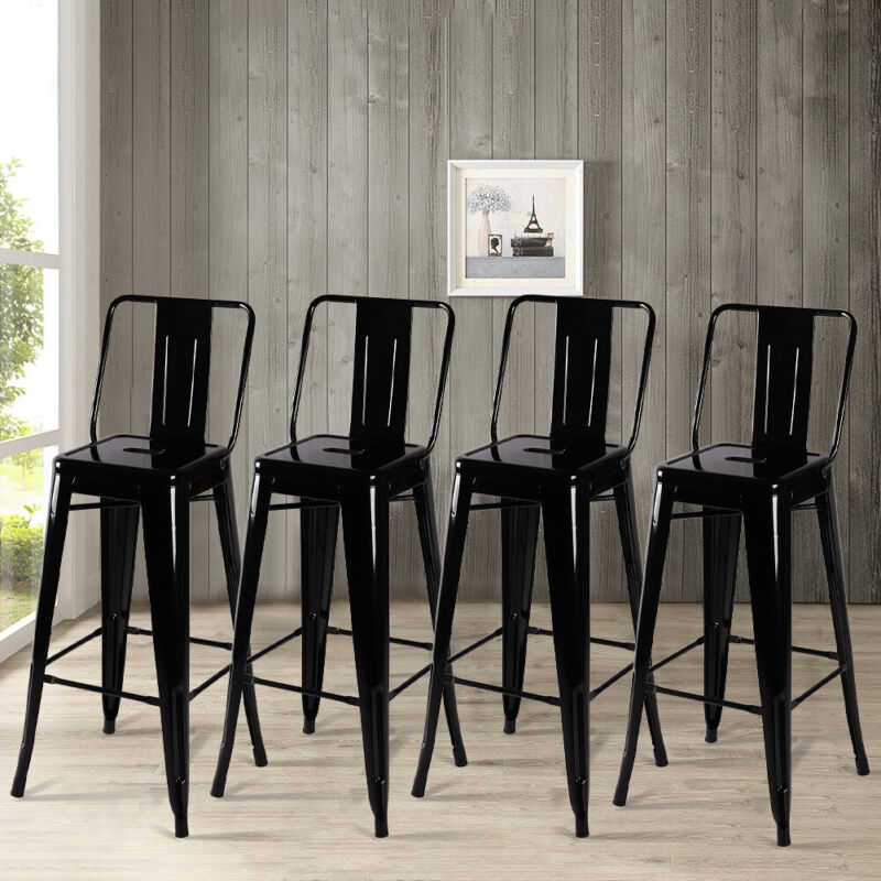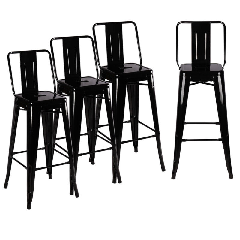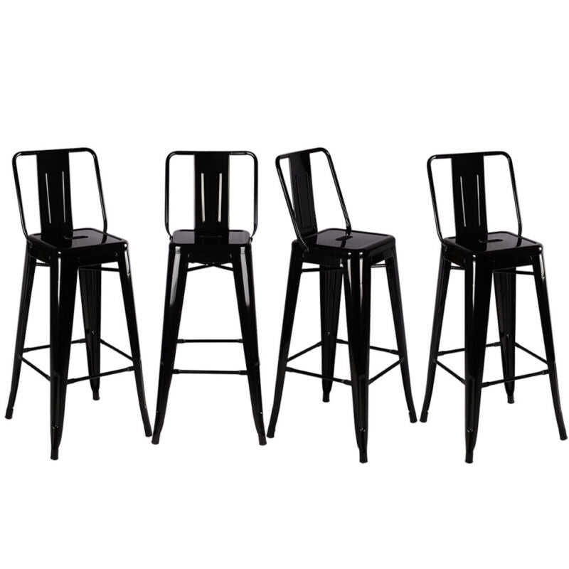 Pack Of 4 Glossy Black High Breakfast Bar Stools Kitchen Counter Metal Pub Chair