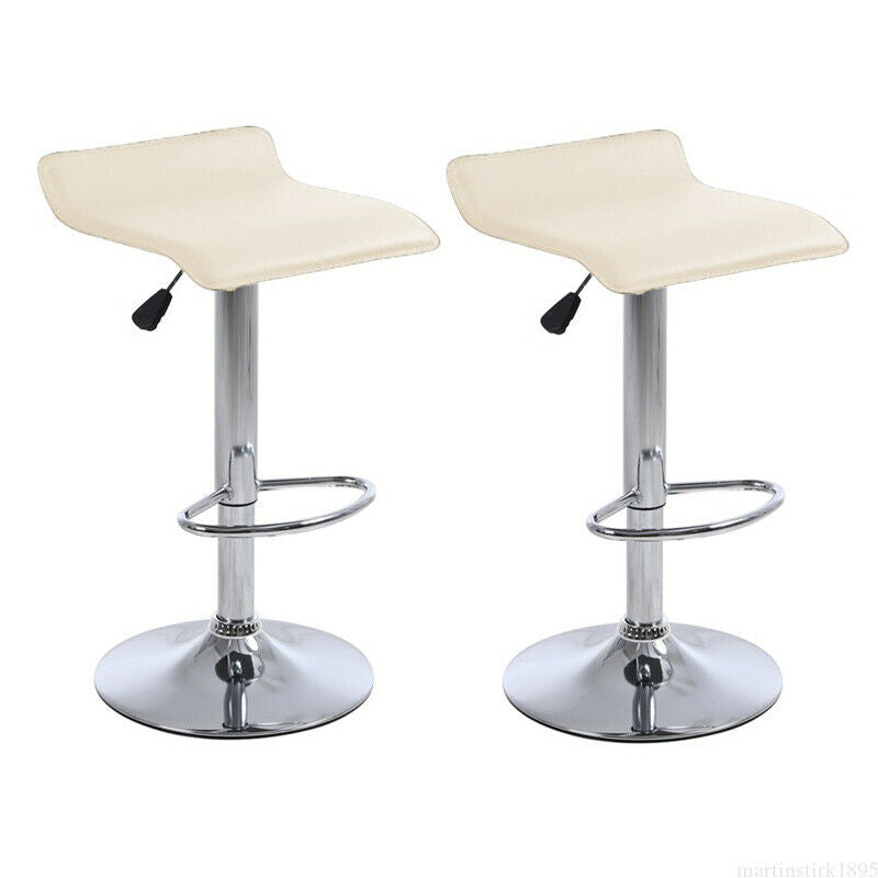 Pair 2* Bar Stool Beige PU Leather Swivel Height Adjustable Footrest Breakfast
