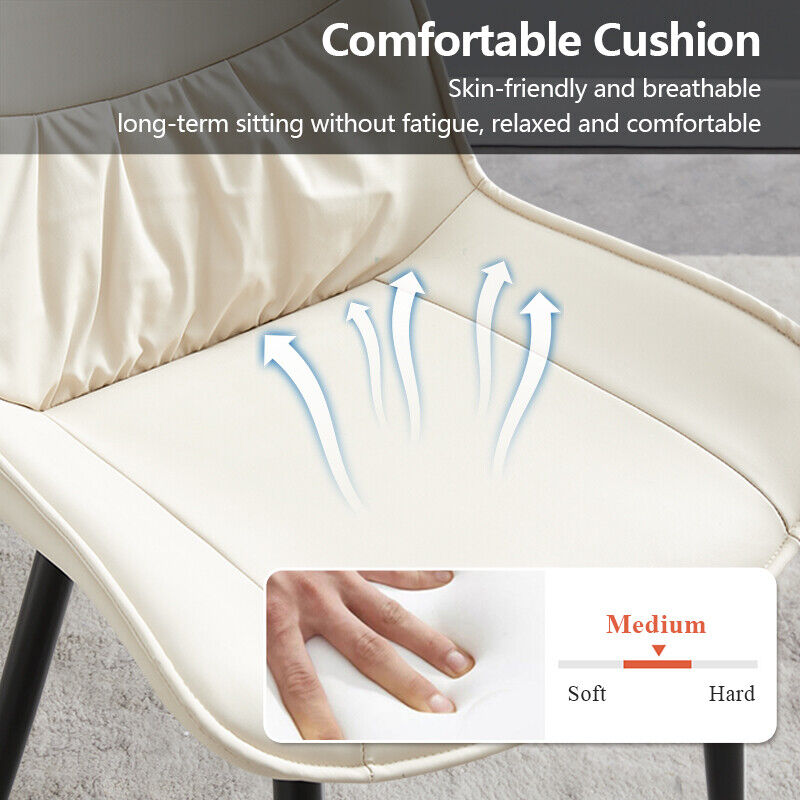 Pair Cream Faux Leather Dining Chairs Metal Legs Padded Modern Dining Room Chair